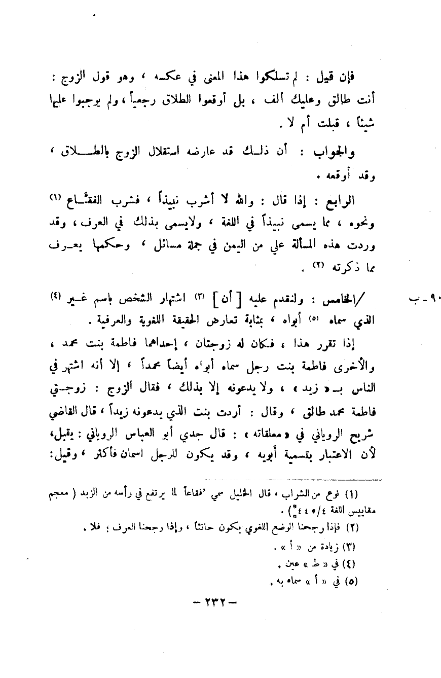 الرَّابِع إِذا قَالَ وَالله لَا أشْرب نبيذا فَشرب الفقاع وَنَحْوه مِمَّا يُسمى نبيذا فِي اللُّغَة وَلَا يُسمى بذلك فِي الْعرف وَقد وَردت هَذِه الْمَسْأَلَة عَليّ من الْيمن فِي جملَة مسَائِل وَحكمهَا يعرف مِمَّا ذكرته