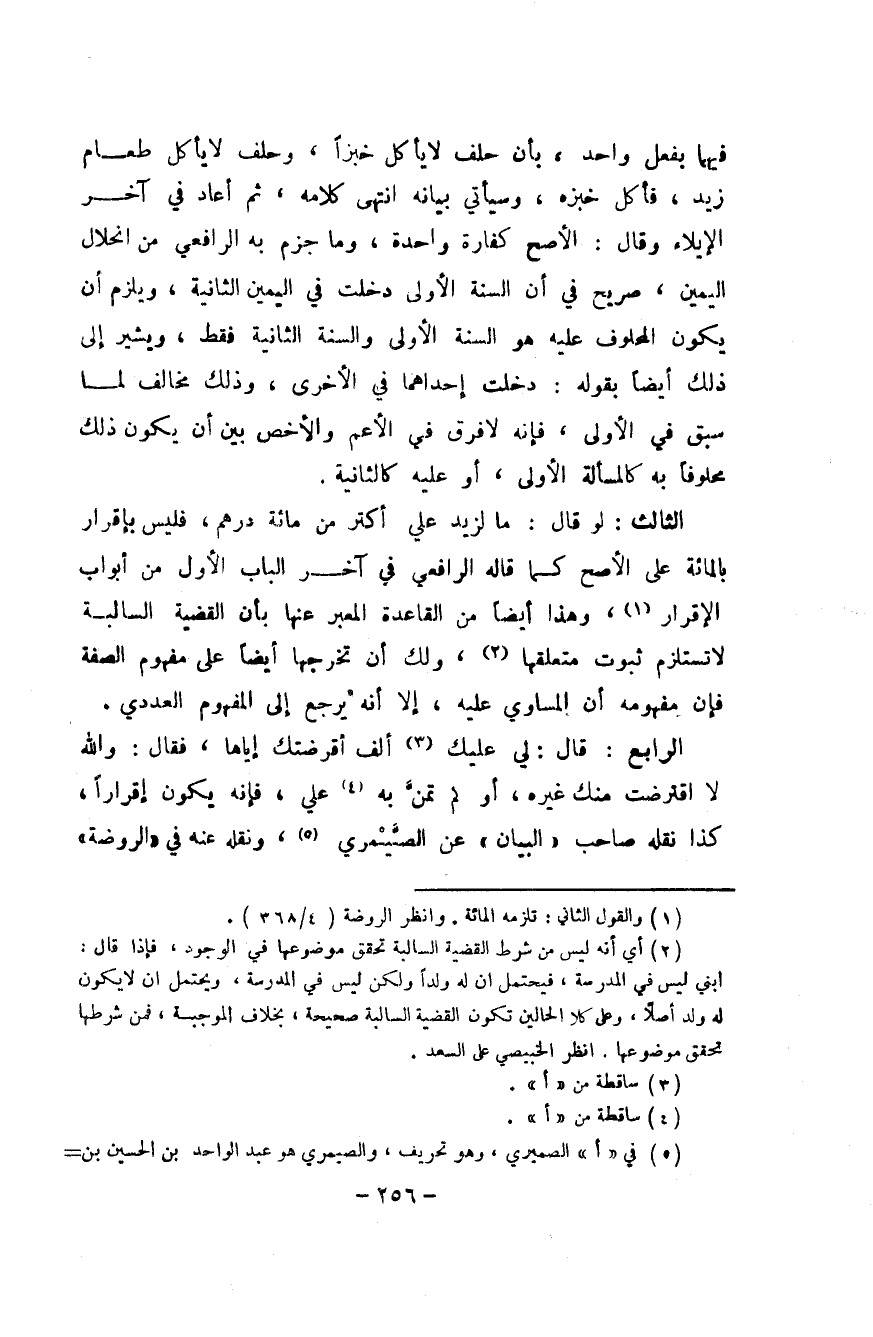 الثَّالِث لَو قَالَ مَا لزيد عَليّ أَكثر من مائَة دِرْهَم فَلَيْسَ بِإِقْرَار بِالْمِائَةِ على الْأَصَح كَمَا قَالَه الرَّافِعِيّ فِي آخر الْبَاب الأول من أَبْوَاب الْإِقْرَار وَهَذَا أَيْضا من الْقَاعِدَة الْمعبر عَنْهَا بِأَن الْقَضِيَّة السالبة لَا تَسْتَلْزِم ثُبُوت متعلقها وَلَك ان تخرجها أَيْضا على مَفْهُوم الصّفة فَإِن مَفْهُومه أَن الْمسَاوِي عَلَيْهِ إِلَّا أَنه يرجع إِلَى الْمَفْهُوم العددي