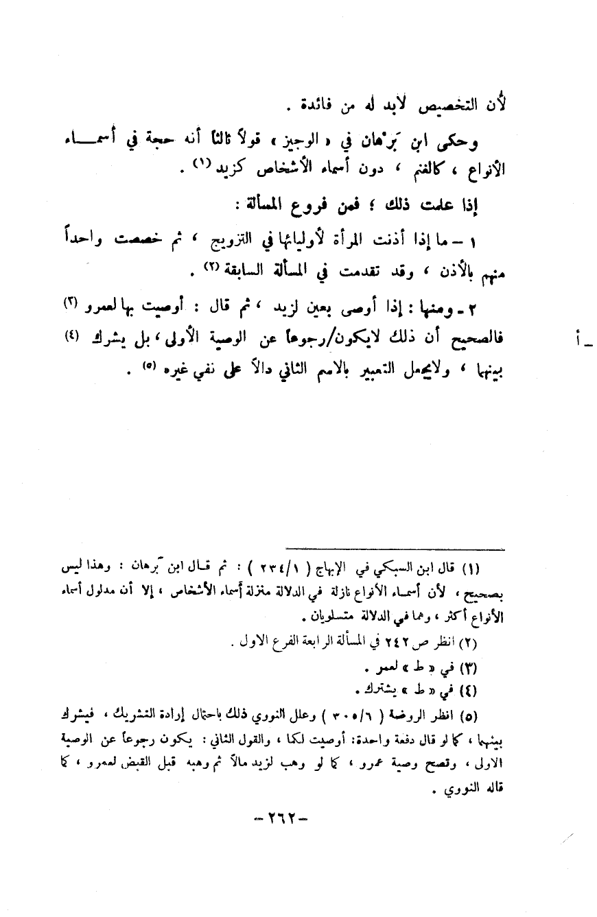 2 - وَمِنْهَا إِذا اوصى بِعَين لزيد ثمَّ قَالَ أوصيت بهَا لعَمْرو فَالصَّحِيح أَن ذَلِك لَا يكون رُجُوعا عَن الْوَصِيَّة الأولى بل يُشْرك بَينهمَا وَلَا يَجْعَل التَّعْبِير بِالِاسْمِ الثَّانِي دَالا على نفي غَيره
