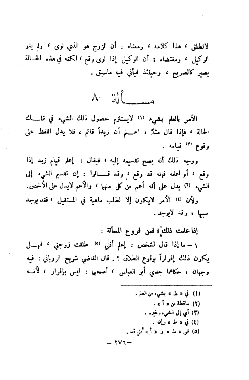 إِذا علمت ذَلِك فَمن فروع الْمَسْأَلَة