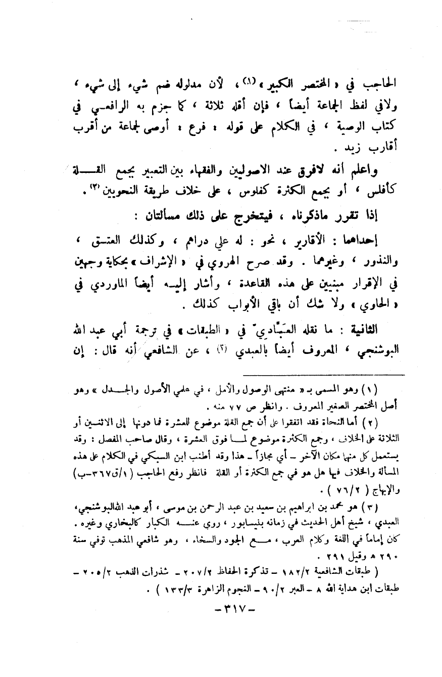الْحَاجِب فِي الْمُخْتَصر الْكَبِير لِأَن مَدْلُوله ضم شَيْء إِلَى شَيْء وَلَا فِي لفظ الْجَمَاعَة أَيْضا فَإِن أَقَله ثَلَاثَة كَمَا جزم بِهِ الرَّافِعِيّ فِي كتاب الْوَصِيَّة فِي الْكَلَام على قَوْله فرع أوصى لجَماعَة من أقرب أقَارِب زيد