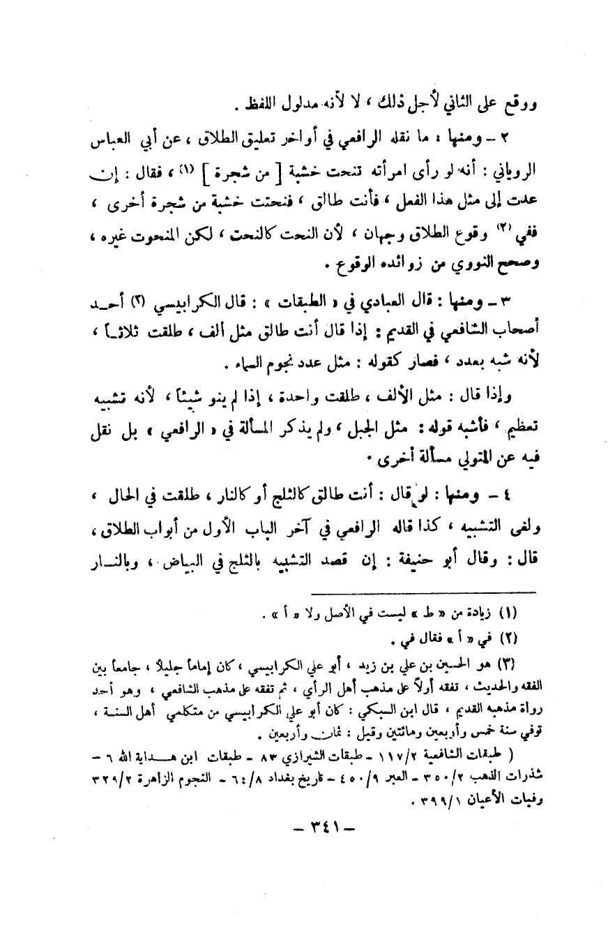 3 - وَمِنْهَا قَالَ الْعَبَّادِيّ فِي الطَّبَقَات قَالَ الْكَرَابِيسِي أحد أَصْحَاب الشَّافِعِي فِي الْقَدِيم إِذا قَالَ أَنْت طَالِق مثل ألف طلقت ثَلَاثًا لِأَنَّهُ شبه بِعَدَد فَصَارَ كَقَوْلِه مثل عدد نُجُوم السَّمَاء