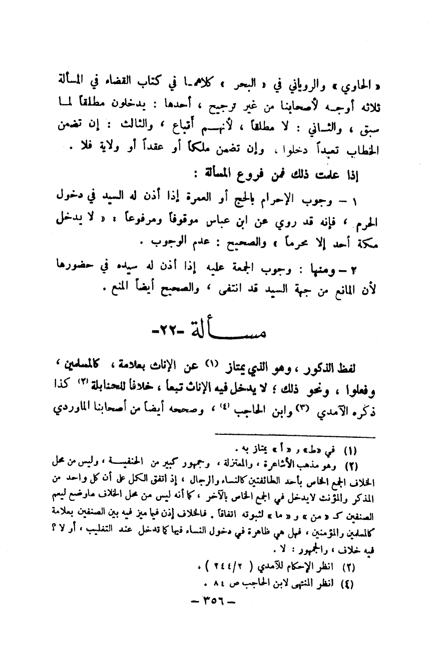 1 - وجوب الْإِحْرَام بِالْحَجِّ أَو الْعمرَة إِذا إِذن لَهُ السَّيِّد فِي دُخُول الْحرم فَإِنَّهُ قد رُوِيَ عَن ابْن عَبَّاس مَوْقُوفا وَمَرْفُوعًا لَا يدْخل مَكَّة أحد إِلَّا محرما وَالصَّحِيح عدم الْوُجُوب