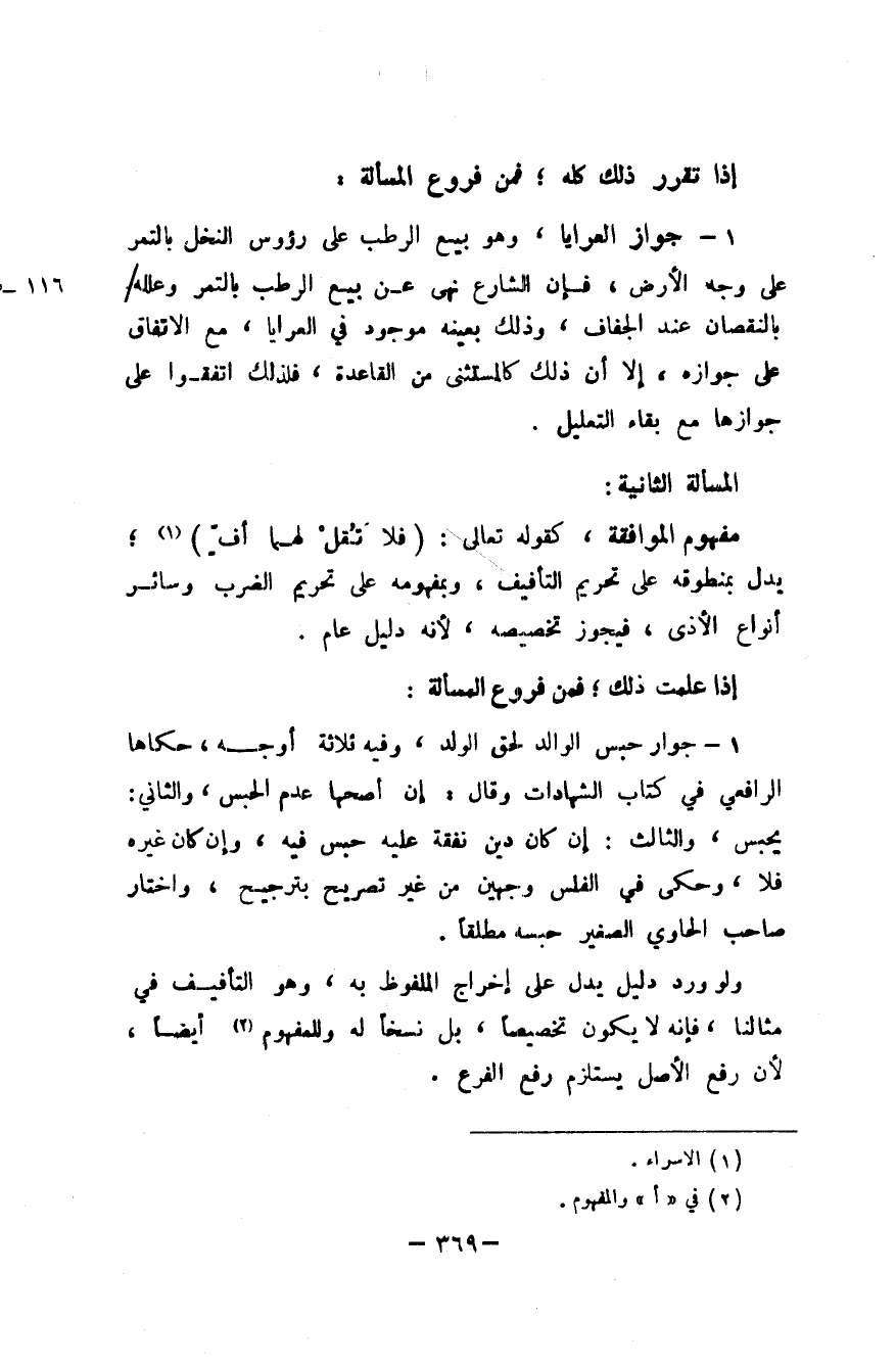 إِذا علمت ذَلِك فَمن فروع الْمَسْأَلَة