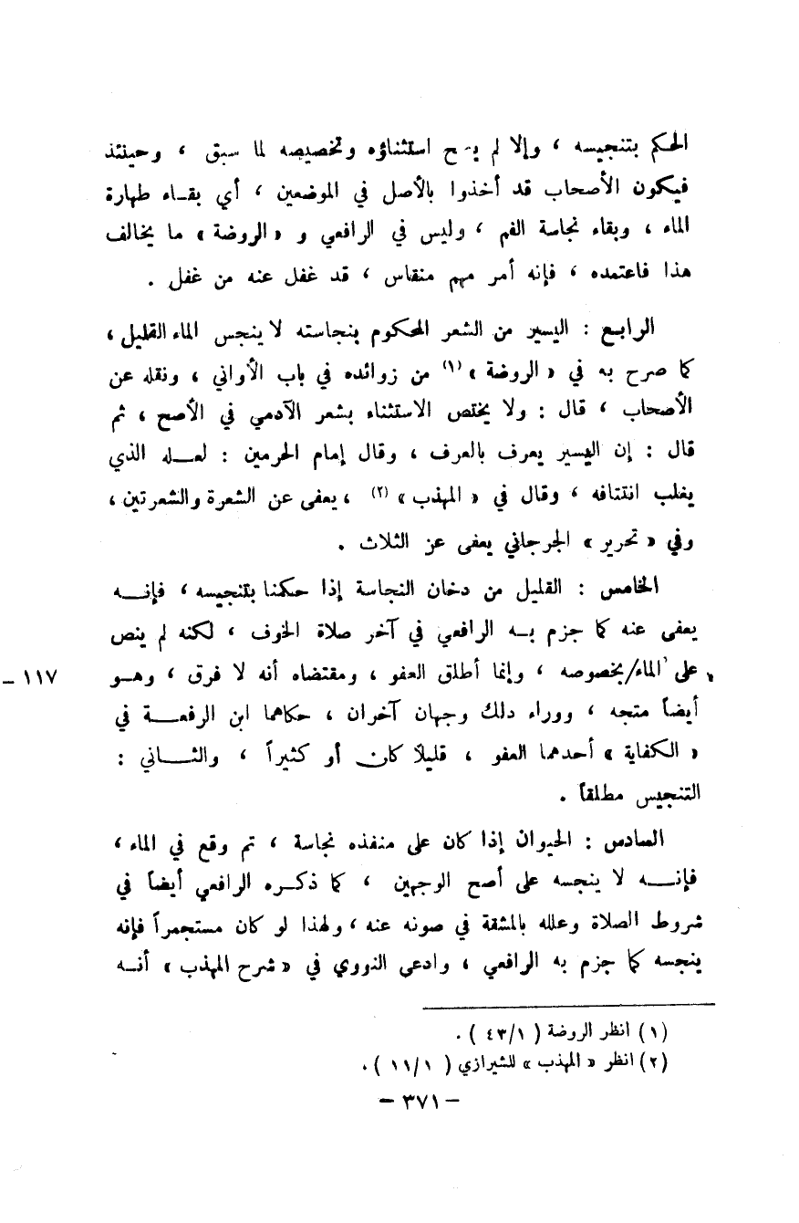 الحكم بتنجيسه وَإِلَّا لم يَصح اسْتِثْنَاؤُهُ وتخصيصه لما سبق وَحِينَئِذٍ فَيكون الْأَصْحَاب قد أخذُوا بِالْأَصْلِ فِي الْمَوْضِعَيْنِ أَي بَقَاء طَهَارَة المَاء وَبَقَاء نَجَاسَة الْفَم وَلَيْسَ فِي الرَّافِعِيّ وَالرَّوْضَة مَا يُخَالف هَذَا فاعتمده فَإِنَّهُ أَمر مُهِمّ منقاس قد غفل عَنهُ من غفل