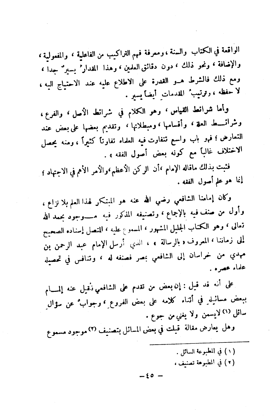 وَكَانَ إمامنا الشَّافِعِي رَضِي الله عَنهُ هُوَ المبتكر لهَذَا الْعلم بِلَا نزاع وَأول من صنف فِيهِ بِالْإِجْمَاع وتصنيفه الْمَذْكُور فِيهِ مَوْجُود بِحَمْد الله تَعَالَى وَهُوَ الْكتاب الْجَلِيل الْمَشْهُور المسموع عَلَيْهِ الْمُتَّصِل إِسْنَاده الصَّحِيح إِلَى زَمَاننَا الْمَعْرُوف بالرسالة الَّذِي أرسل الإِمَام عبد الرَّحْمَن بن مهْدي من خُرَاسَان إِلَيّ الشَّافِعِي بِمصْر فصنفه لَهُ وتنافس فِي تَحْصِيله عُلَمَاء عصره