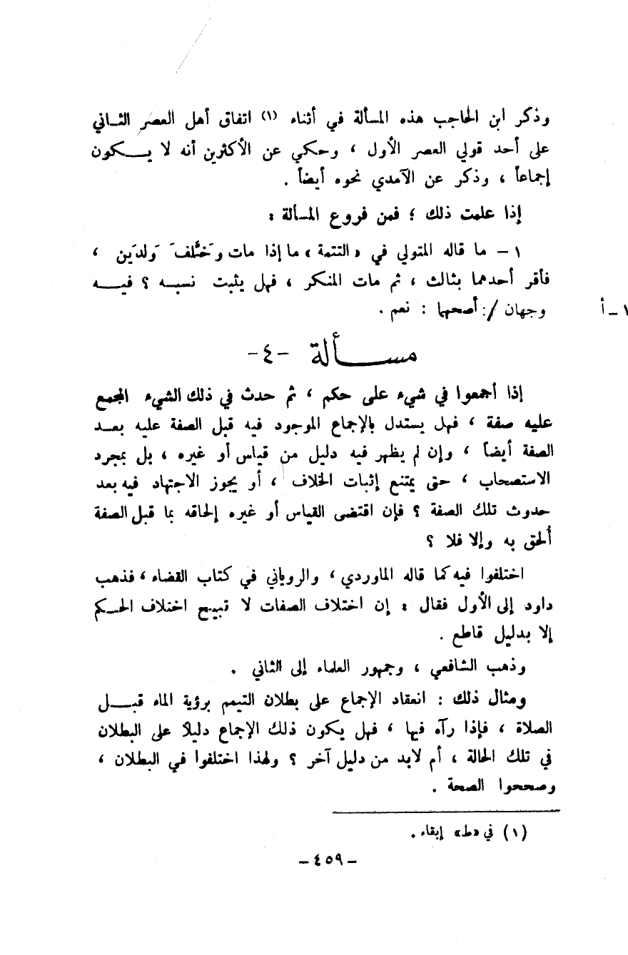 وَذكر ابْن الْحَاجِب هَذِه الْمَسْأَلَة فِي أثْنَاء اتِّفَاق أهل الْعَصْر الثَّانِي على أحد قولي الْعَصْر الأول وَحكي عَن الْأَكْثَرين أَنه لَا يكون إِجْمَاعًا وَذكر عَن الْآمِدِيّ نَحوه أَيْضا