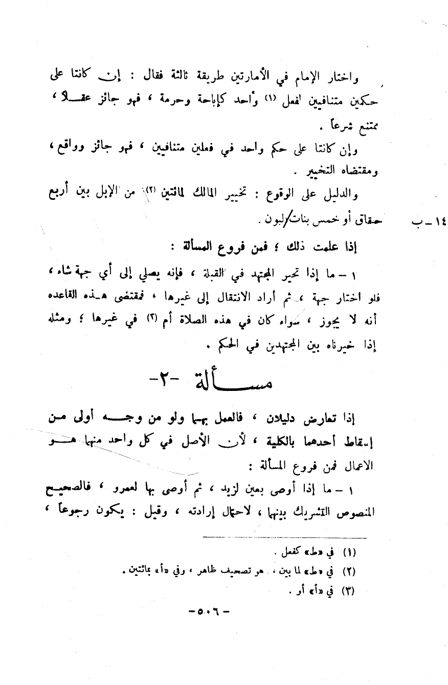 إِذا علمت ذَلِك فَمن فروع الْمَسْأَلَة