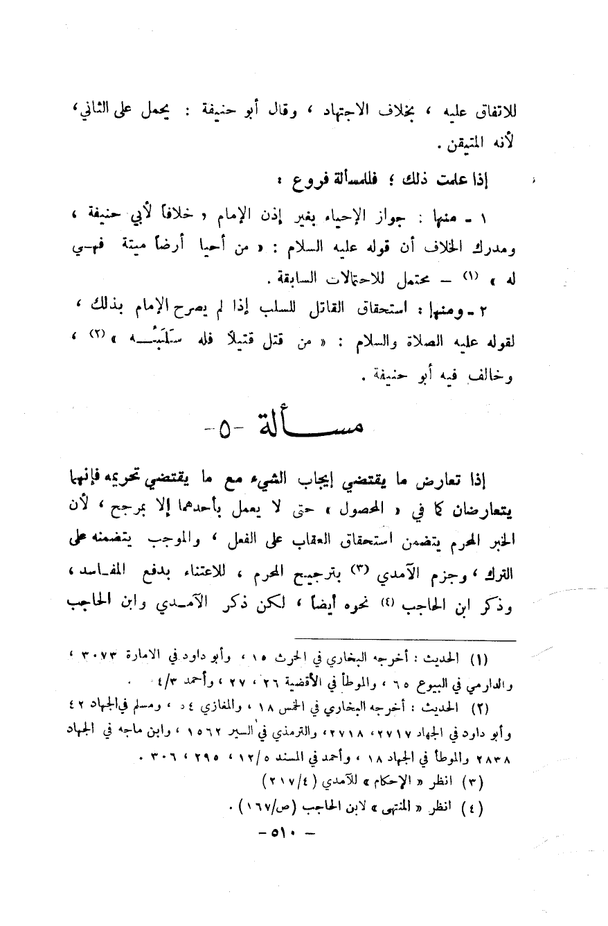 1 - مِنْهَا جَوَاز الْإِحْيَاء بِغَيْر إِذن الإِمَام خلافًا لأبي حنيفَة ومدرك الْخلاف أَن قَوْله عَلَيْهِ السَّلَام من أَحْيَا أَرضًا ميتَة فَهِيَ لَهُ مُحْتَمل للاحتمالات السَّابِقَة