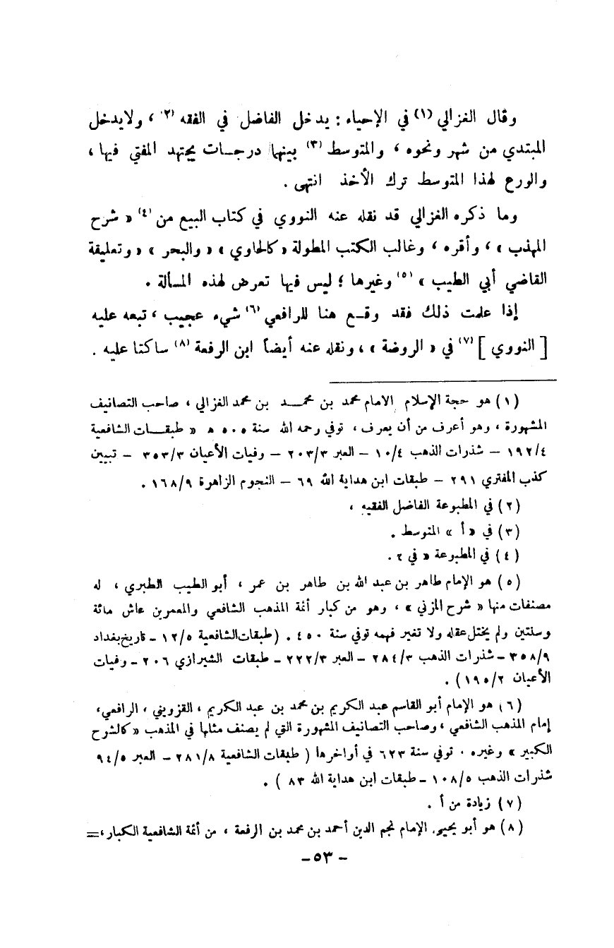وَمَا ذكره الْغَزالِيّ قد نَقله عَنهُ النَّوَوِيّ فِي كتاب البيع من شرح الْمُهَذّب وَأقرهُ وغالب الْكتب المطولة كالحاوي وَالْبَحْر وتعليقة االقاضي أبي الطّيب وَغَيرهَا لَيْسَ فِيهَا تعرض لهَذِهِ الْمَسْأَلَة