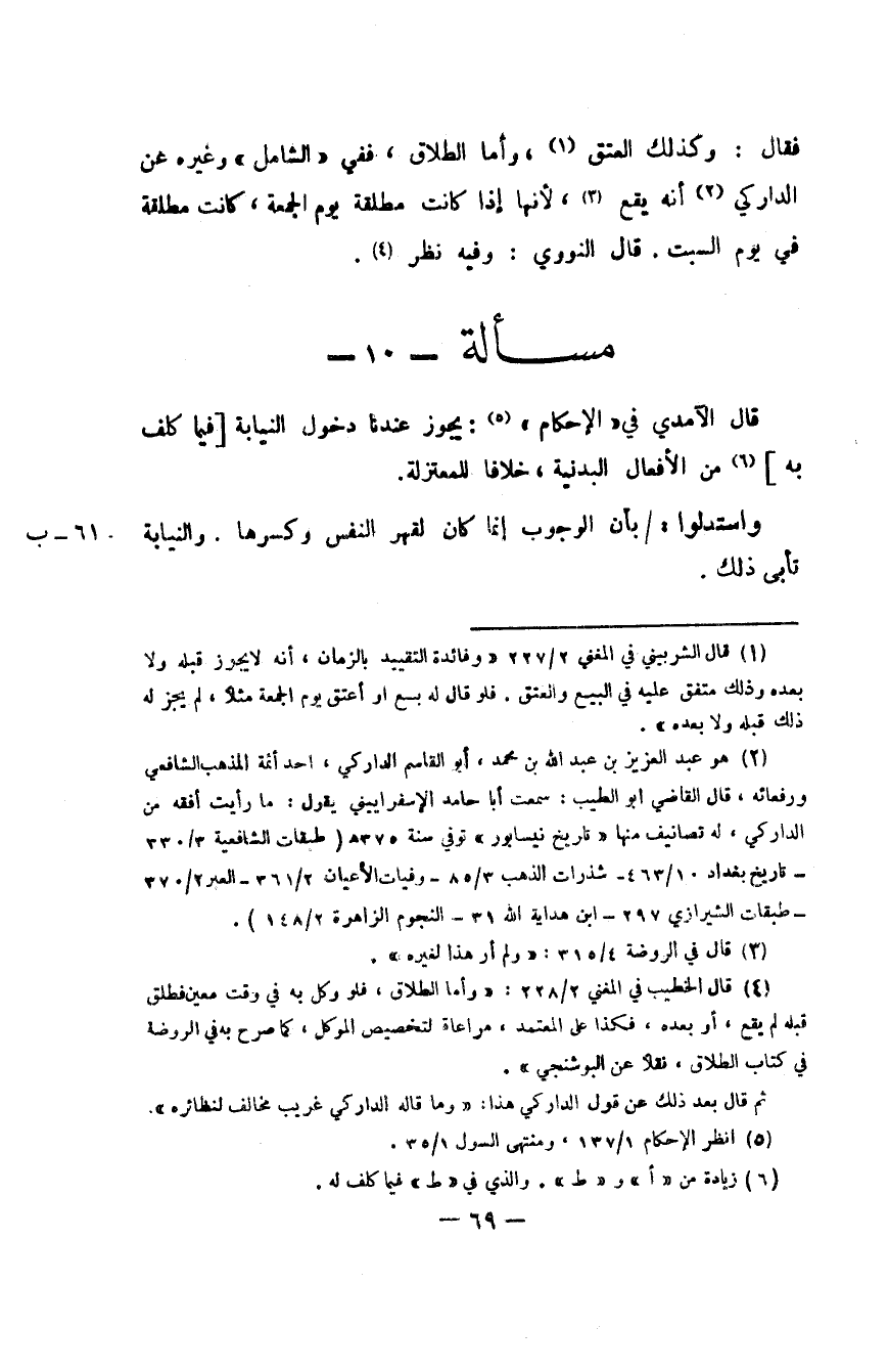 فَقَالَ وَكَذَلِكَ الْعتْق وَأما الطَّلَاق فَفِي الشَّامِل وَغَيره عَن الداركي انه إِذا كَانَت مُطلقَة يَوْم الْجُمُعَة كَانَت مُطلقَة فِي يَوْم السبت قَالَ النَّوَوِيّ وَفِيه نظر
