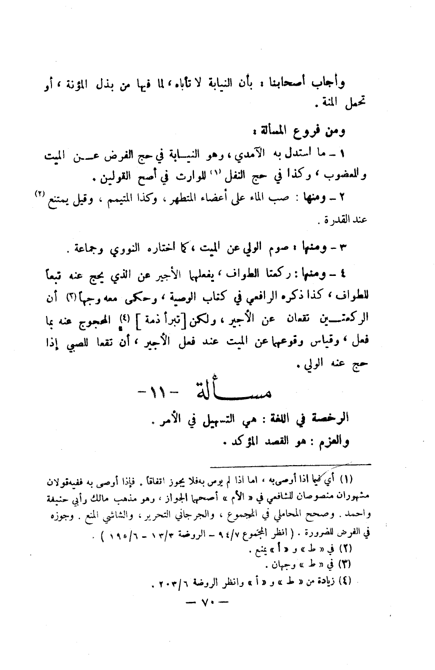 1 - مَا اسْتدلَّ بِهِ الْآمِدِيّ وَهُوَ النِّيَابَة فِي حج الْفَرْض عَن الْمَيِّت والمعضوب وَكَذَا فِي حج النَّفْل للْوَارِث فِي أصح الْقَوْلَيْنِ