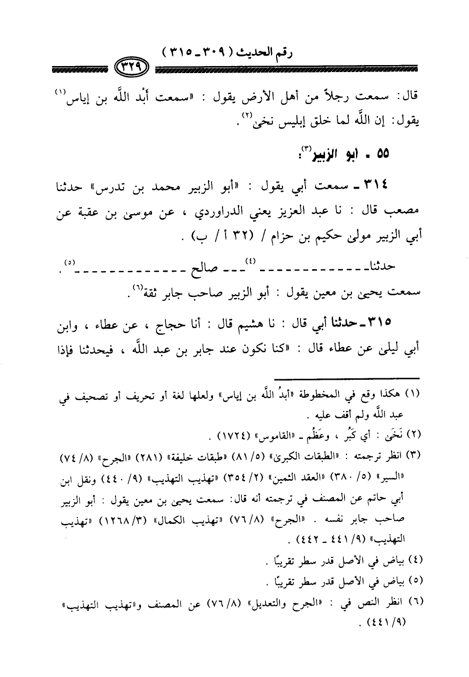 314 - سَمِعت أبي يَقُول: " أَبُو الزبير مُحَمَّد بن تدرس " حَدثنَا مُصعب قَالَ: نَا عبد الْعَزِيز يَعْنِي الدَّرَاورْدِي، عَن مُوسَى بن عقبَة عَن أبي الزبير مولى حَكِيم بن حزَام / (32 أ / ب) .