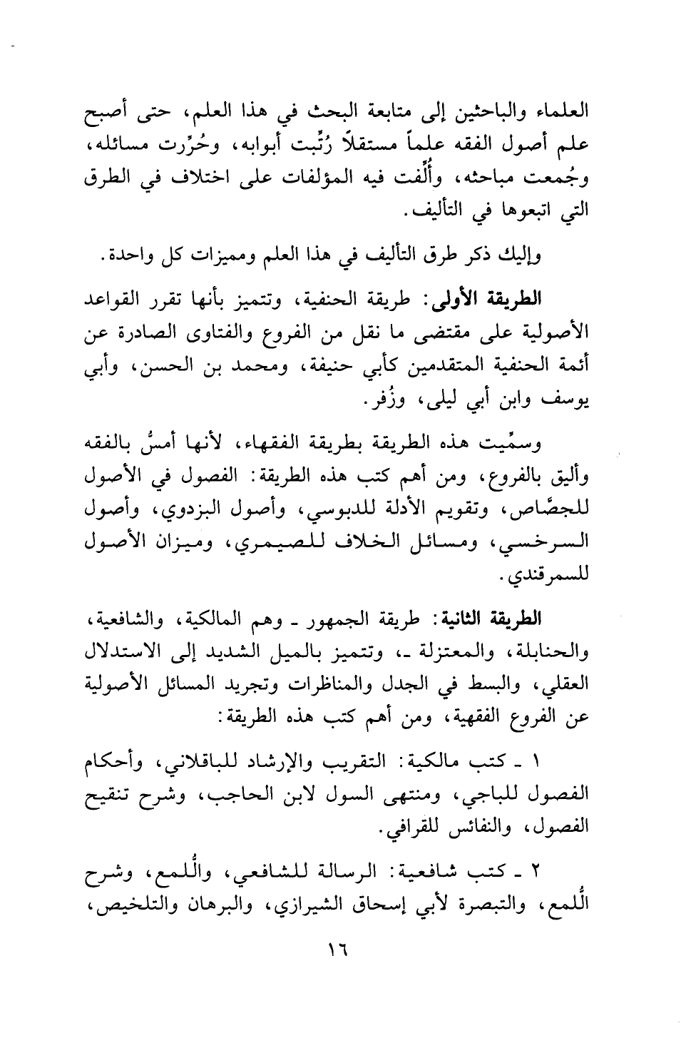 الطريقة الثانية: طريقة الجمهور - وهم المالكية، والشافعية، والحنابلة، والمعتزلة -، وتتميز بالميل الشديد إلى الاستدلال العقلي، والبسط في الجدل والمناظرات وتجريد المسائل الأصولية عن الفروع الفقهية، ومن أهم كتب هذه الطريقة: