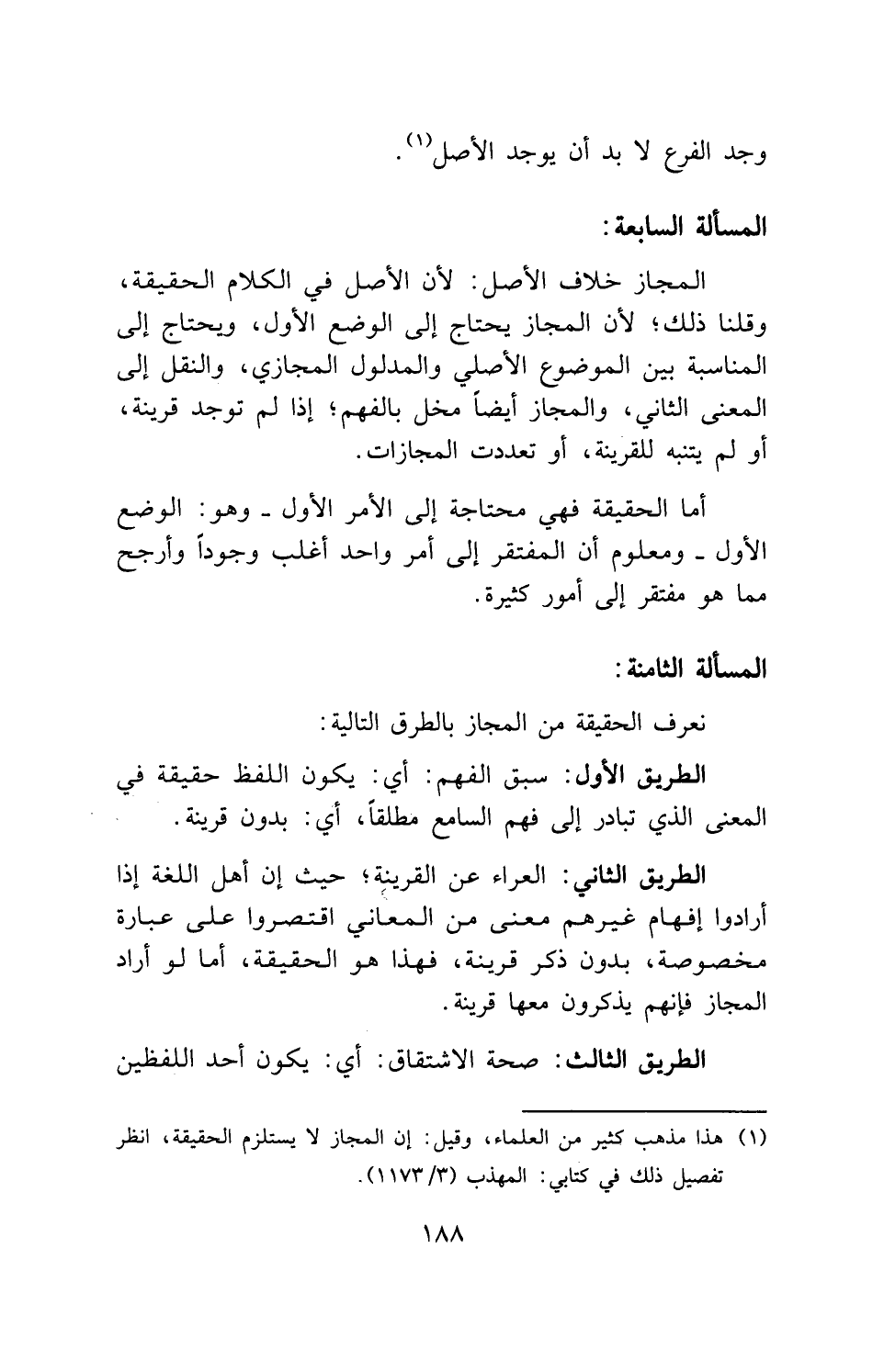 أما الحقيقة فهي محتاجة إلى الأمر الأول - وهو: الوضع الأول - ومعلوم أن المفتقر إلى أمر واحد أغلب وجوداً وأرجح مما هو مفتقر إلى أمور كثيرة.