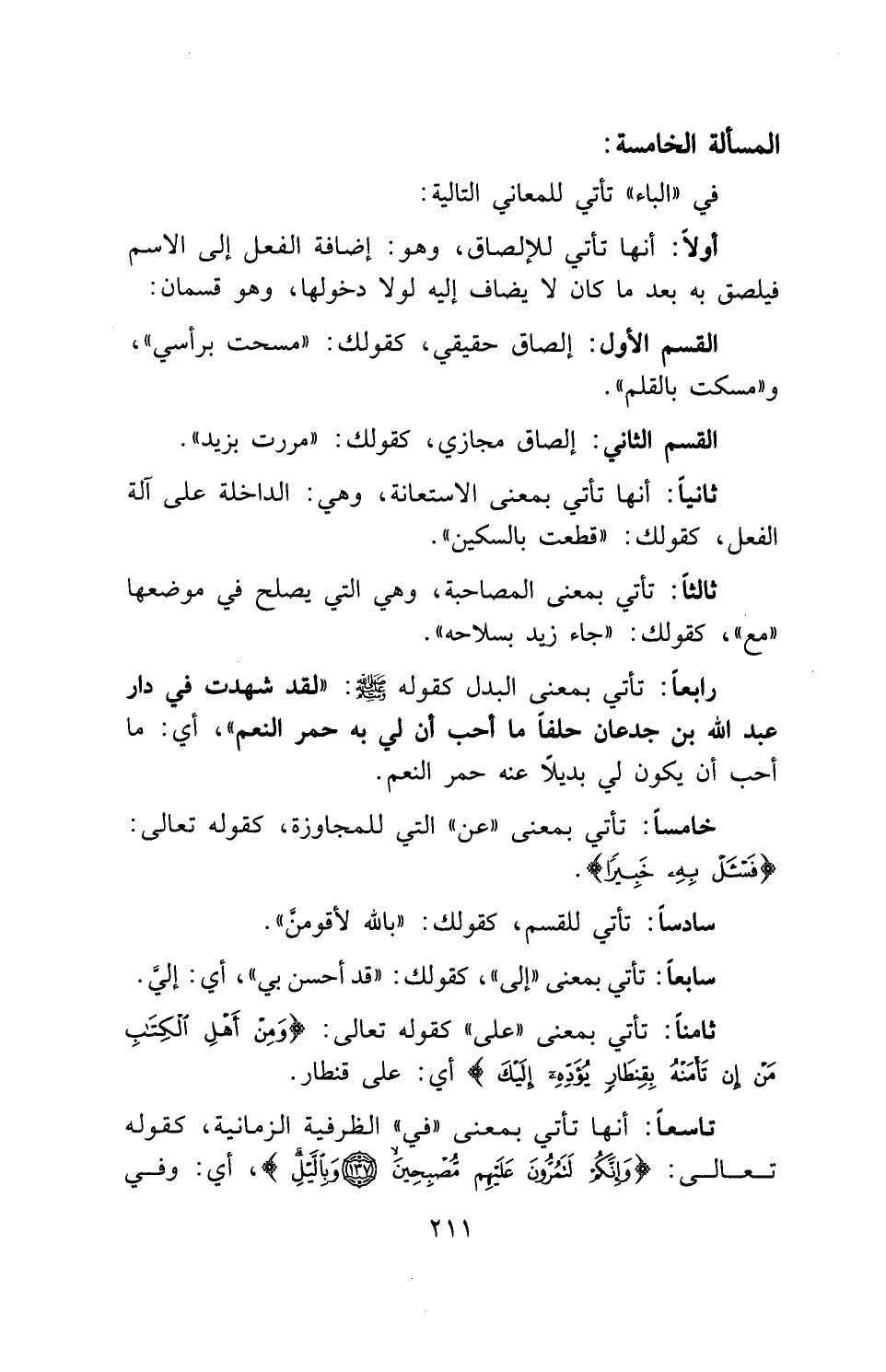 خامساً: تأتي بمعنى " عن " التي للمجاوزة، كقوله تعالى: (فَاسْأَلْ بِهِ خَبِيرًا).