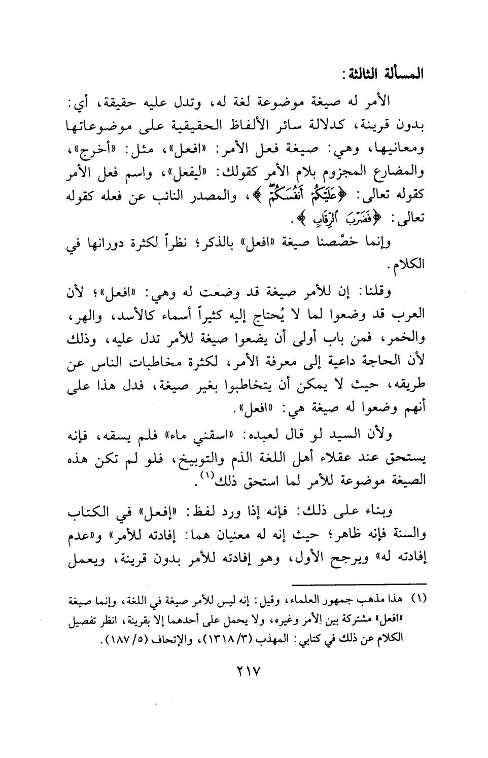 وإنما خصصنا صيغة " افعل " بالذكر؛ نظراً لكثرة دورانها في الكلام.