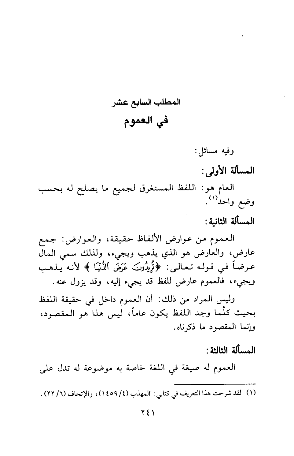 المطلب السابع عشر