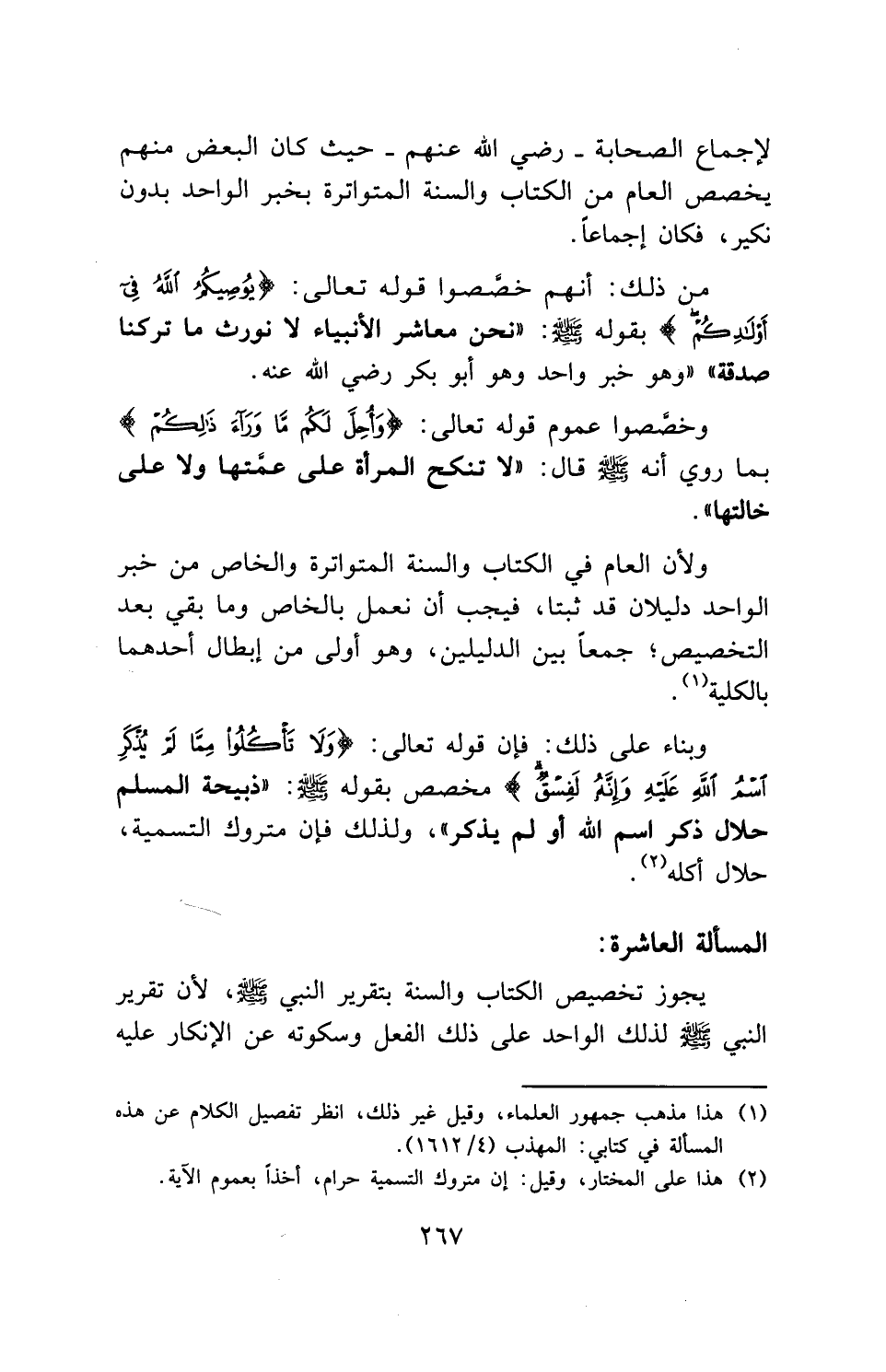 يجوز تخصيص الكتاب والسنة بتقرير النبي - صلى الله عليه وسلم -، لأن تقرير النبي - صلى الله عليه وسلم - لذلك الواحد على ذلك الفعل وسكوته عن الإنكار عليه