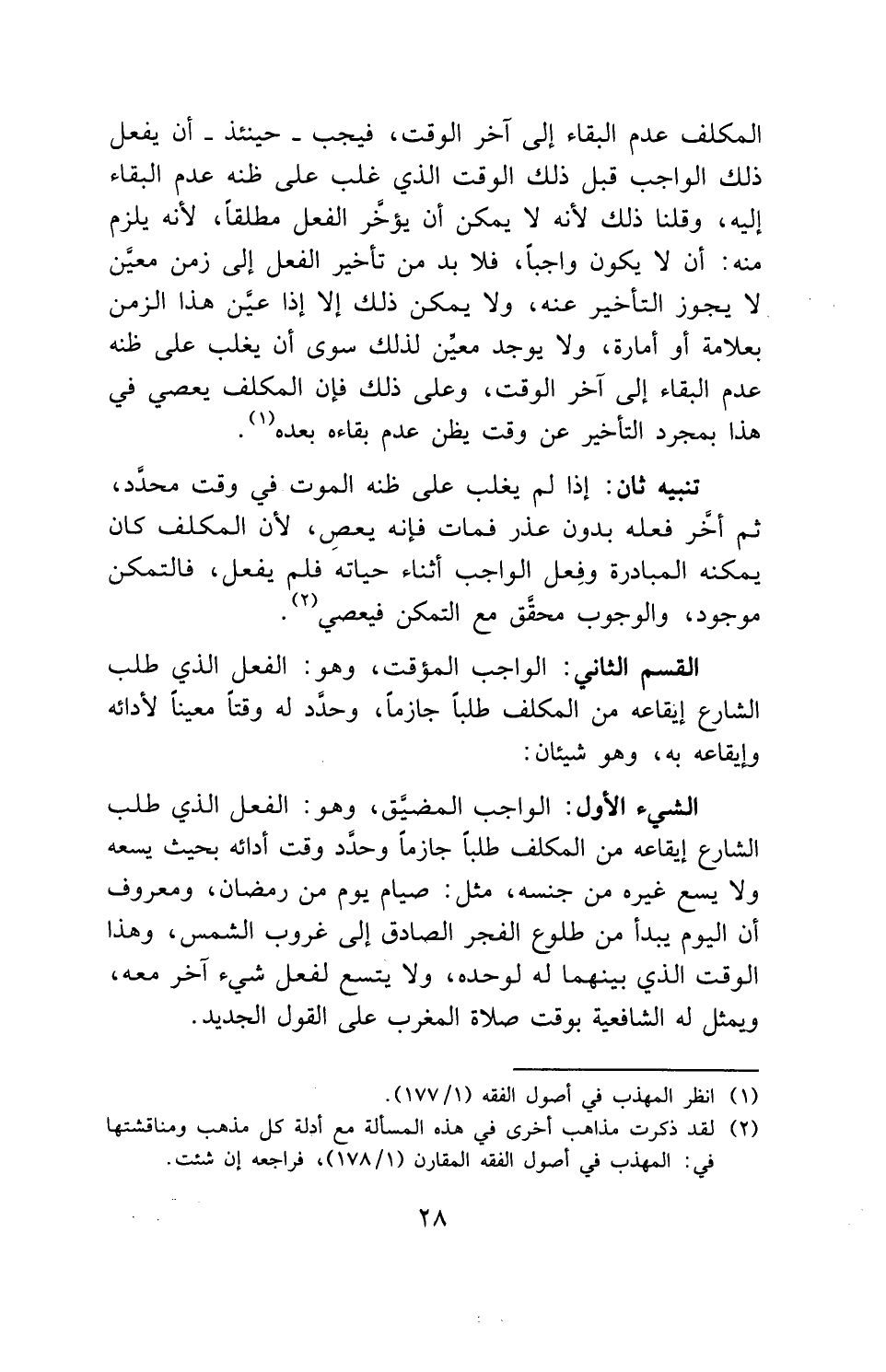 القسم الثاني: الواجب المؤقت، وهو: الفعل الذي طلب الشارع إيقاعه من المكلف طلباً جازماً، وحدَّد له وقتاً معيناً لأدائه وإيقاعه به، وهو شيئان: