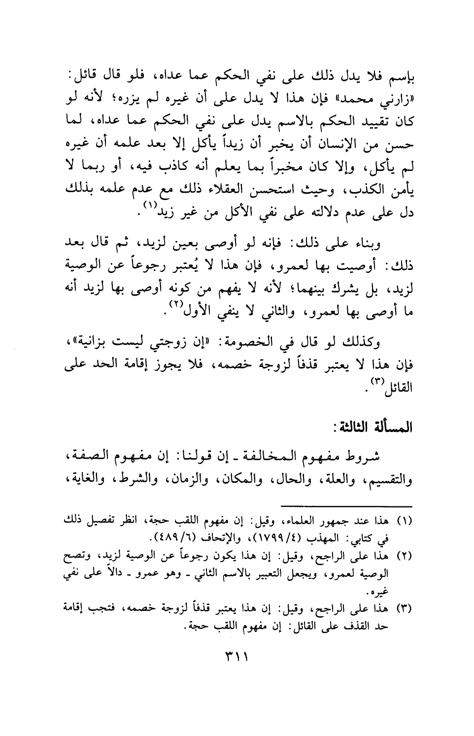 شروط مفهوم المخالفة - إن قولنا: إن مفهوم الصفة، والتقسيم، والعلة، والحال، والمكان، والزمان، والشرط، والغاية،