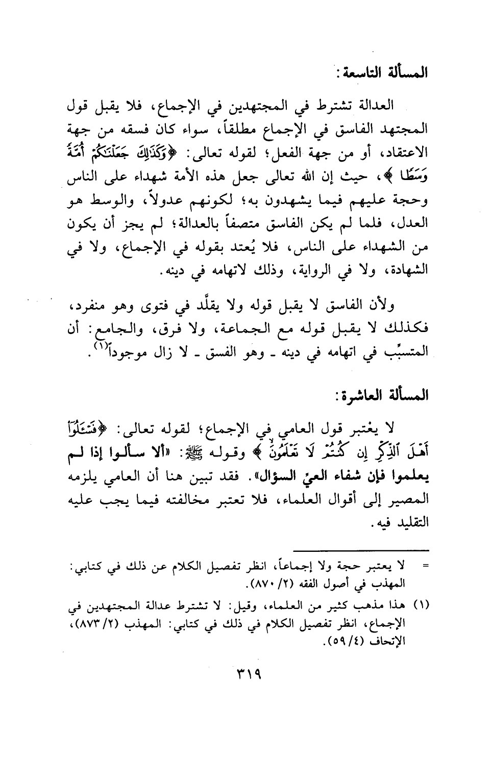 المسألة العاشرة: