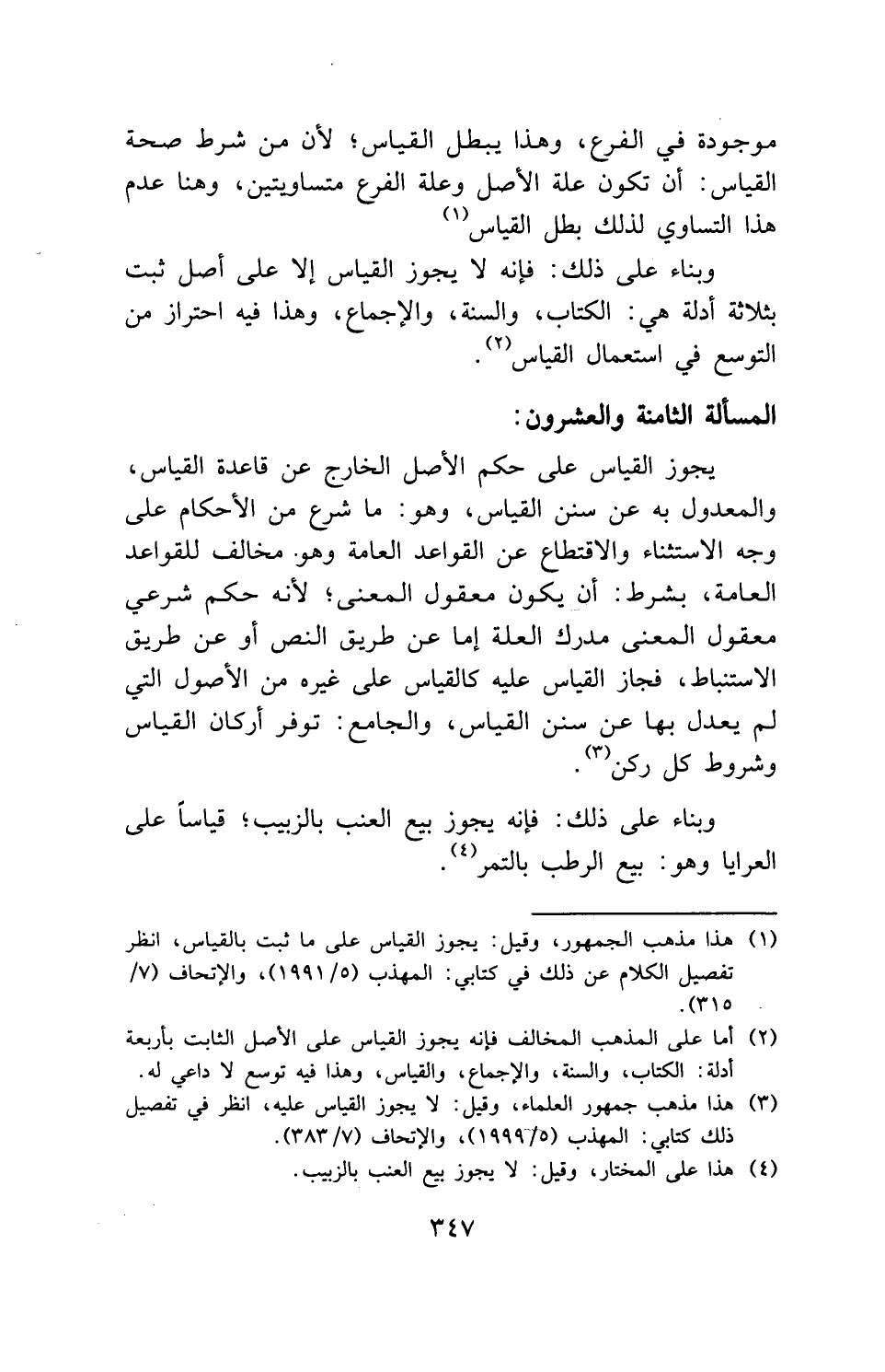 وبناء على ذلك: فإنه لا يجوز القياس إلا على أصل ثبت بثلاثة أدلة هي: الكتاب، والسنة، والإجماع، وهذا فيه احتراز من التوسع في استعمال القياس.