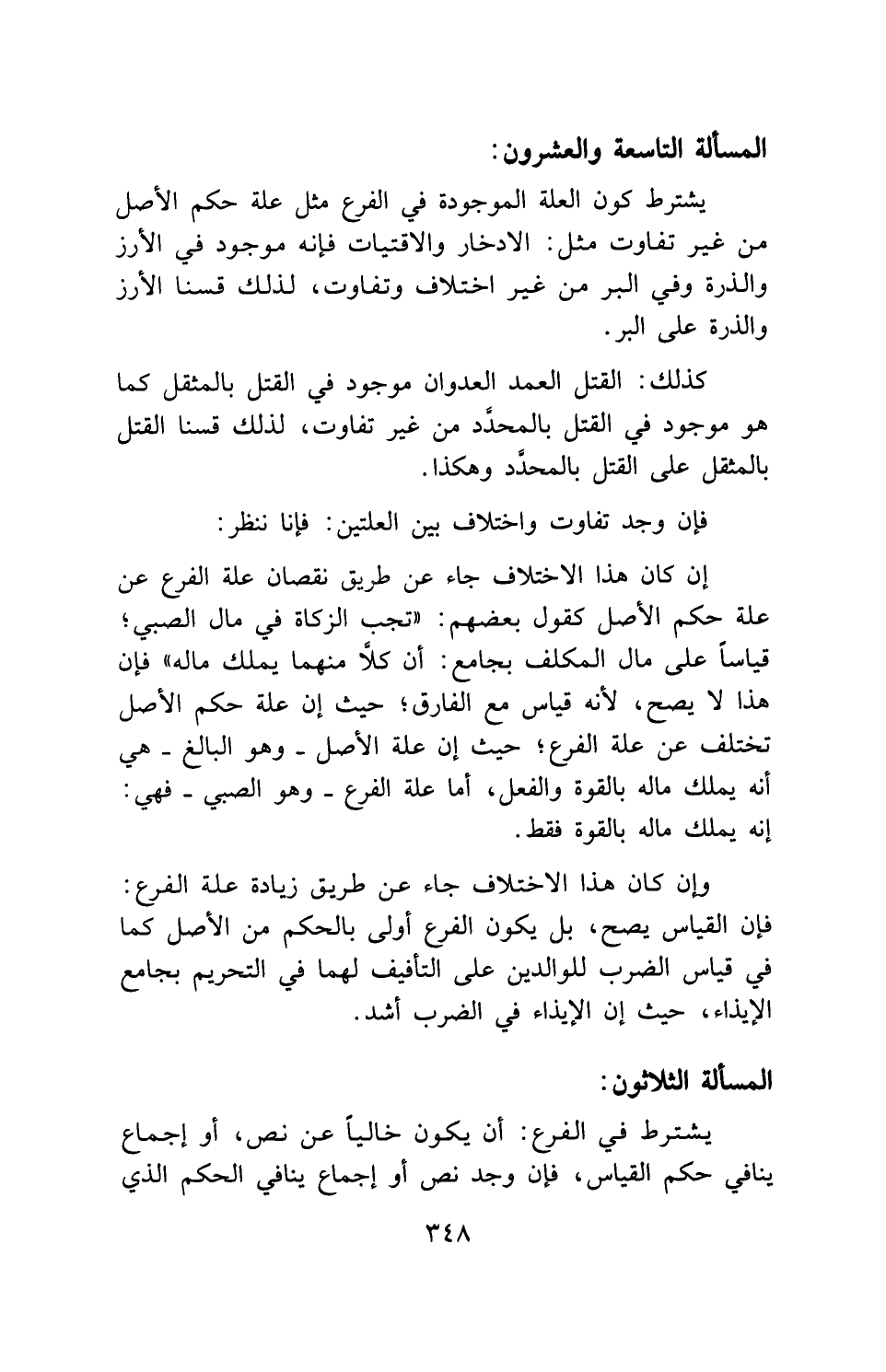 يشترط كون العلة الموجودة في الفرع مثل علة حكم الأصل من غير تفاوت مثل: الادخار والاقتيات فإنه موجود في الأرز والذرة وفي البر من غير اختلاف وتفاوت، لذلك قسنا الأرز والذرة على البر.