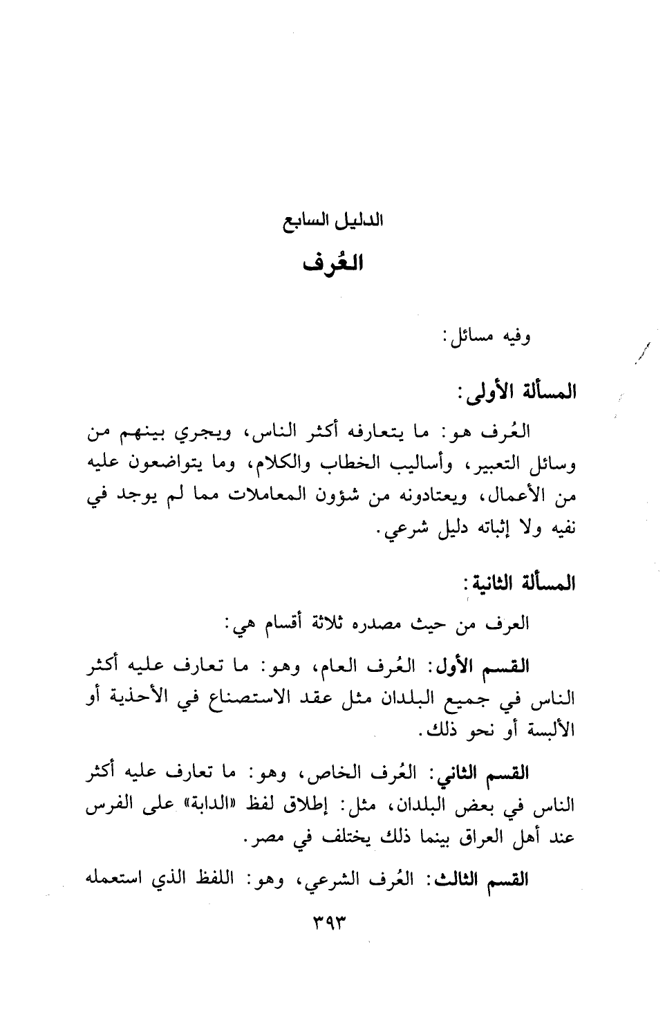 القسم الثاني: العُرف الخاص، وهو: ما تعارف عليه أكثر الناس في بعض البلدان، مثل: إطلاق لفظ " الدابة " على الفرس عند أهل العراق بينما ذلك يختلف في مصر.