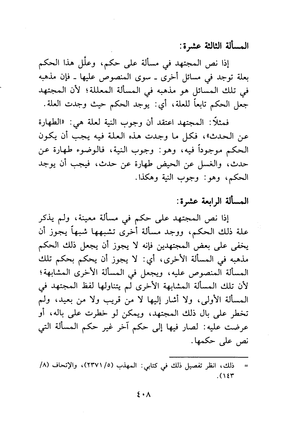 إذا نص المجتهد على حكم في مسألة معينة، ولم يذكر علة ذلك الحكم، ووجد مسألة أخرى تشبهها شبهاً يجوز أن يخفى على بعض المجتهدين فإنه لا يجوز أن يجعل ذلك الحكم مذهبه في المسألة الأخرى، أي: لا يجوز أن يحكم بحكم تلك المسألة المنصوص عليه، ويجعل في المسألة الأخرى المشابهة؛ لأن تلك المسألة المشابهة الأخرى لم يتناولها لفظ المجتهد في المسألة الأولى، ولا أشار إليها لا من قريب ولا من بعيد، ولم تخطر على بال ذلك المجتهد، ويمكن لو خطرت على باله، أو عرضت عليه: لصار فيها إلى حكم آخر غير حكم المسألة التي نص على حكمها.