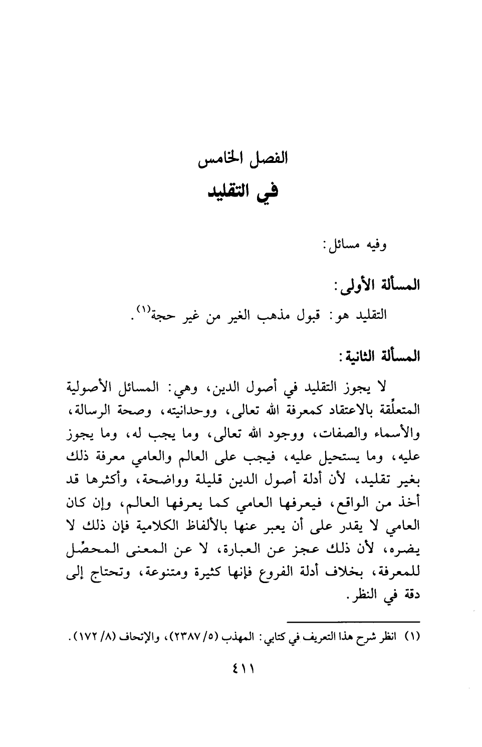 التقليد هو: قبول مذهب الغير من غير حجة.