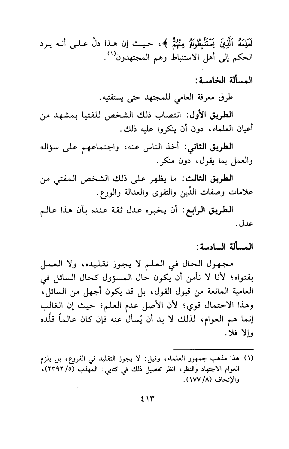 لَعَلِمَهُ الَّذِينَ يَسْتَنْبِطُونَهُ مِنْهُمْ)، حيث إن هذا دلَّ على أنه يرد الحكم إلى أهل الاستنباط وهم المجتهدون.