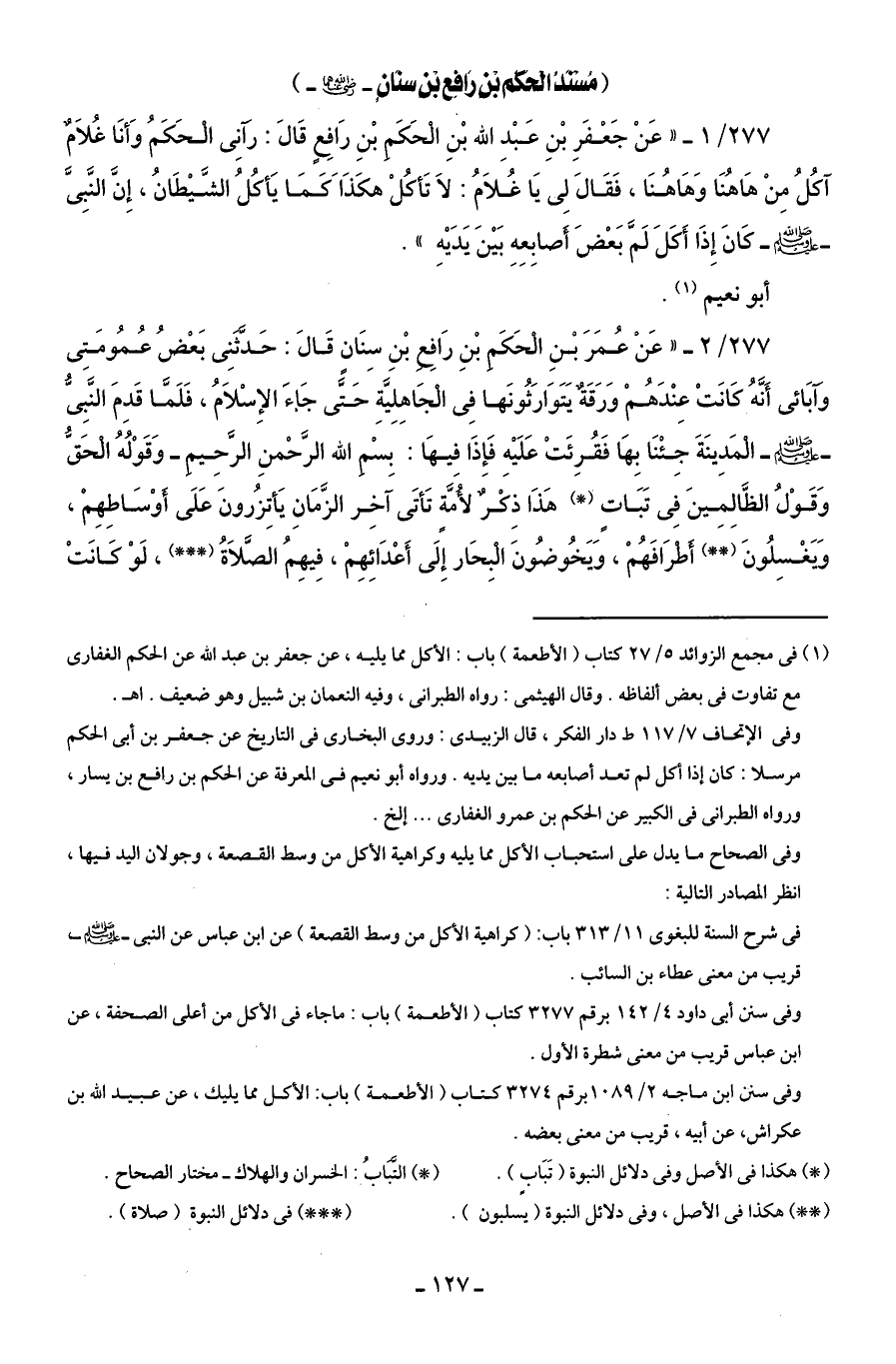 (مُسْنَدُ الحكم بن رَافع بن سنَانٍ - رضي الله عنهما -)