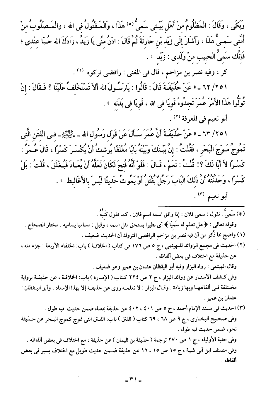 وفى صحيح البخارى، ج 9 ص 68، 69 كتاب (الفتن) باب: الفتن التى تموج كموج البحر عن حذيفة نحوه ضمن حديث فيه طول.