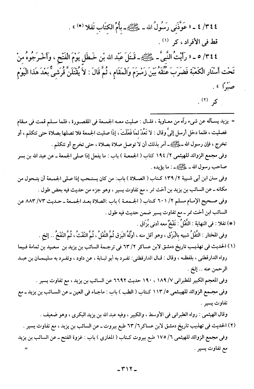 (¬2) الحديث في تهذيب تاريخ دمشق لابن عساكر 6/ 63 طبع بيروت - عن السائب بن يزيد، مع تفاوت يسير.