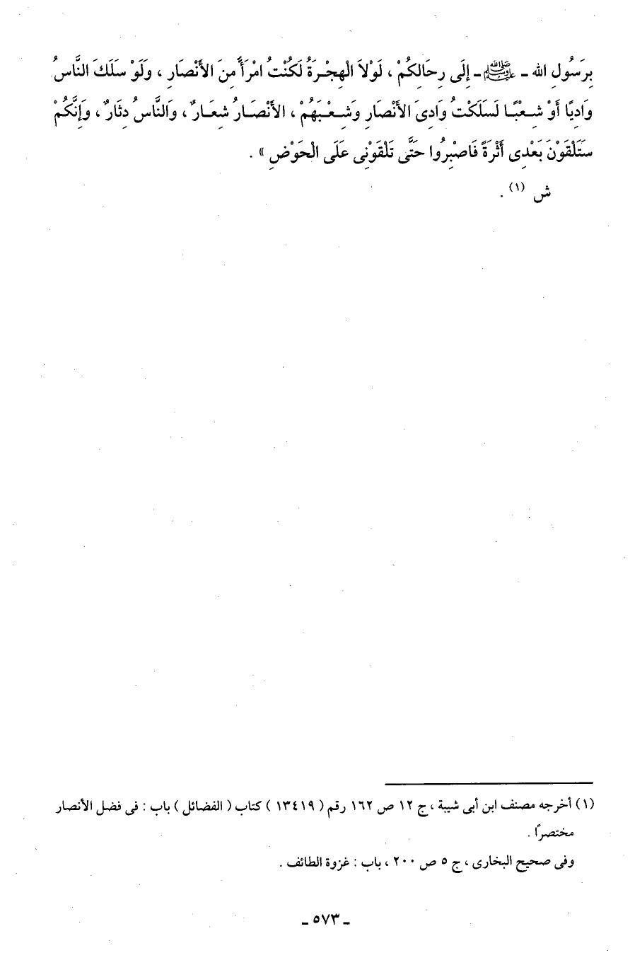 (¬1) أخرجه مصنف ابن أبي شيبة، ج 12 ص 162 رقم (13419) كتاب (الفضائل) باب: في فضل الأنصار مختصرًا.