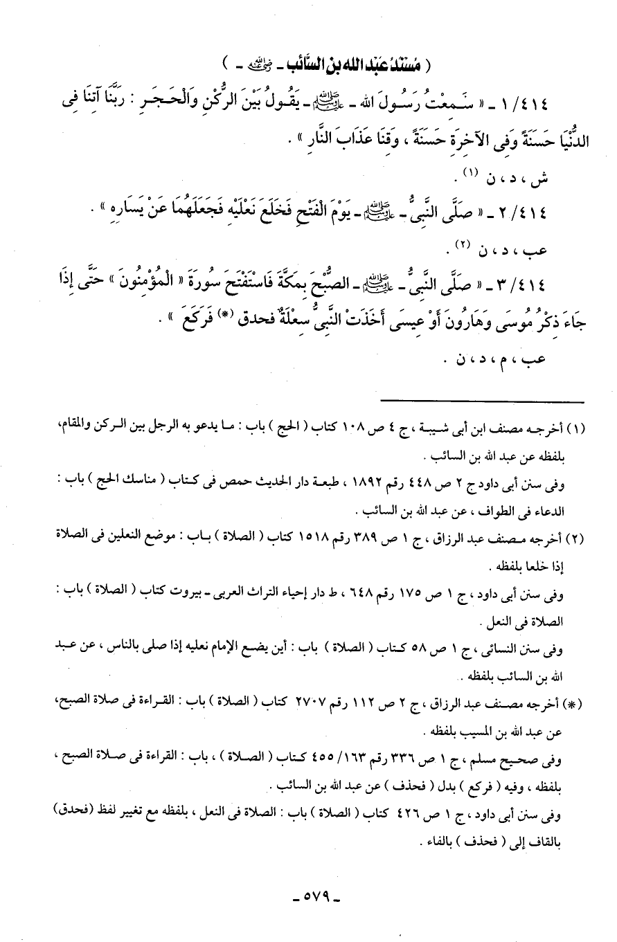 (مُسْنَد عَبد الله بن السَّائب - رضي الله عنه -)