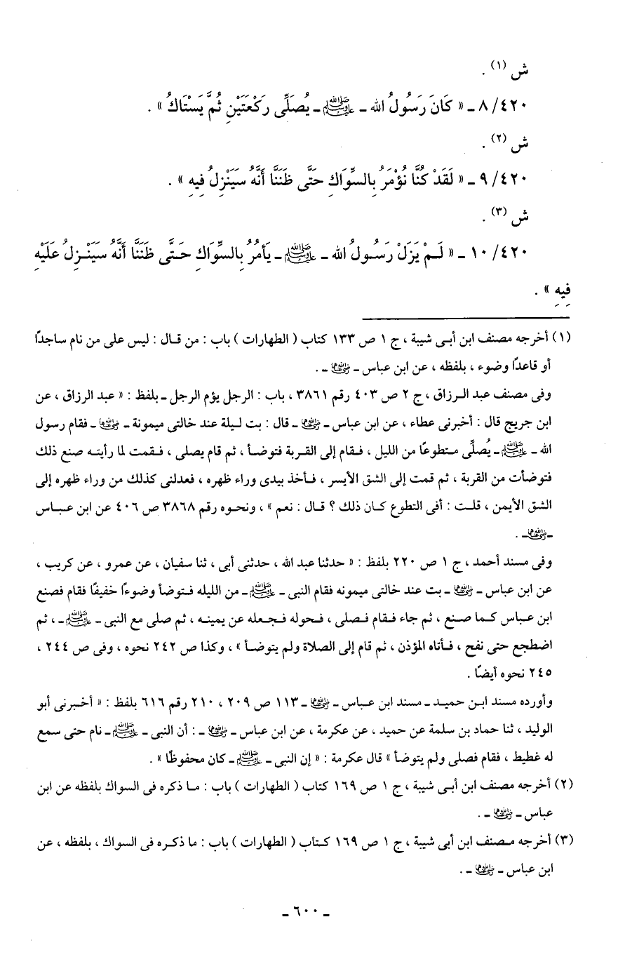 420/ 9 - "لَقَدْ كُنَّا نُؤْمَرُ بِالسِّوَاكِ حَتَّى ظَنَنَّا أَنَّهُ سَيَنْزِلُ فِيهِ".