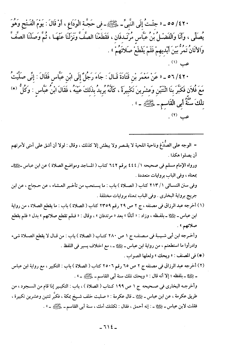 (¬2) أخرجه عبد الرزاق في مصنفه ج 2 ص 65 رقم 2506 كتاب (الصلاة) باب: التكبير، مع رواية ابن عباس - رضي الله عنهما - بلفظه؛ إلا أنه قال: "ويحك تلك سنة أبى القاسم - صلى الله عليه وسلم - ".