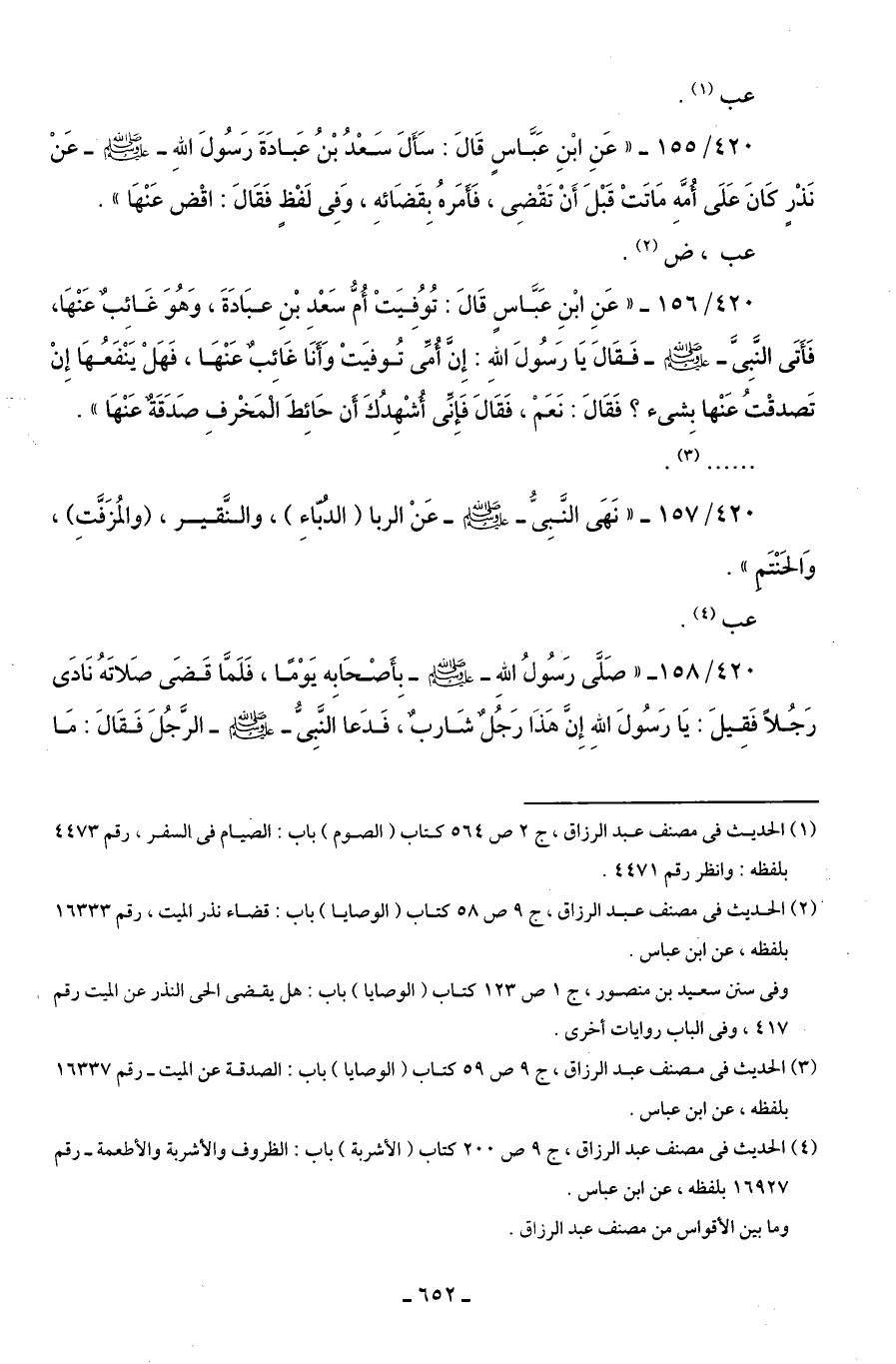 (¬4) الحديث في مصنف عبد الرزاق، ج 9 ص 200 كتاب (الأشربة) باب: الظروف والأشربة والأطعمة - رقم 16927 بلفظه، عن ابن عباس - رضي الله عنهما -.