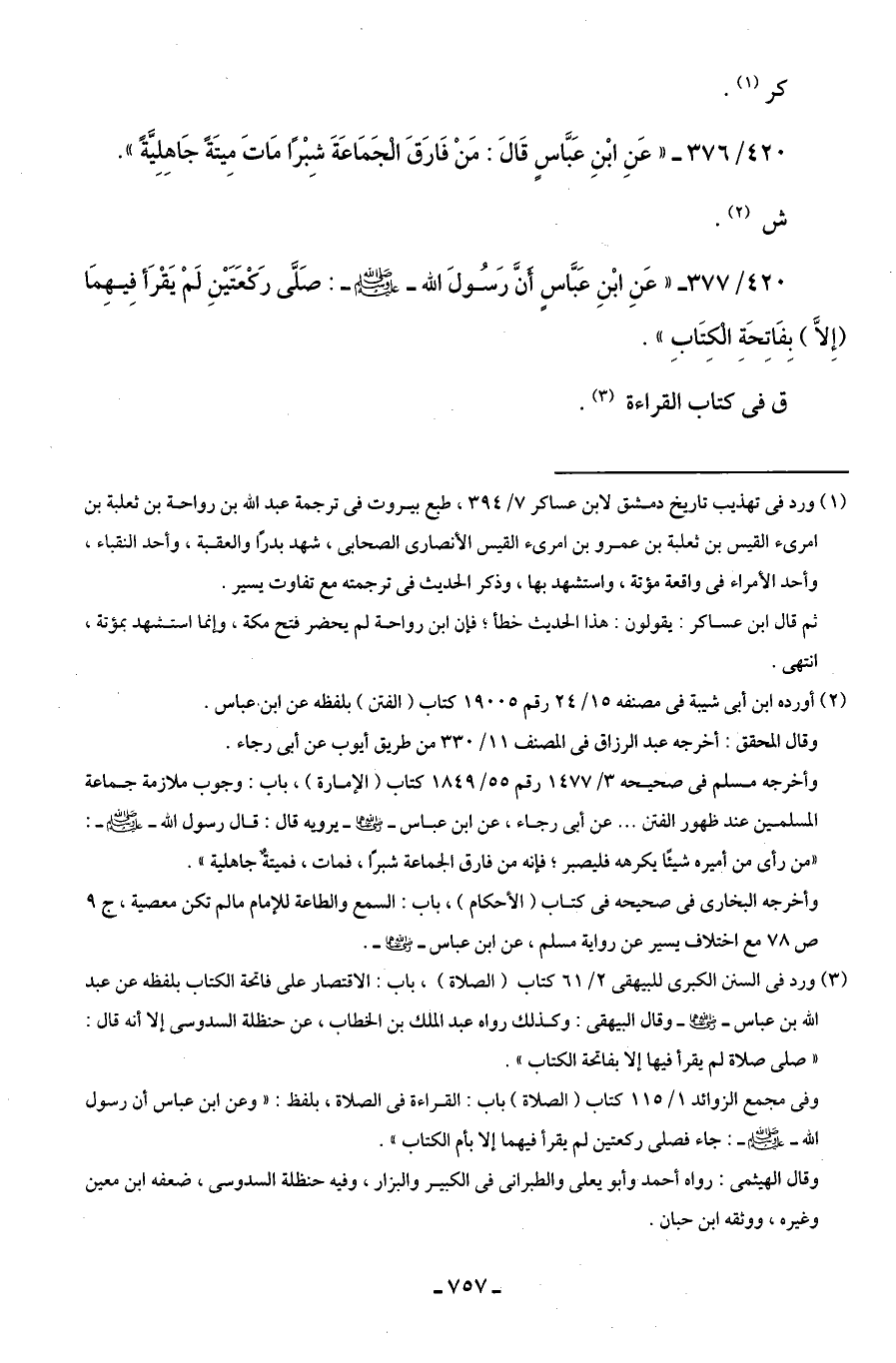 420/ 376 - "عَنِ ابْنِ عَبَّاسٍ قَالَ: مَنْ فَارَقَ الْجَمَاعَةَ شِبْرًا مَاتَ مِيتَةً جَاهِلِيَّةً".