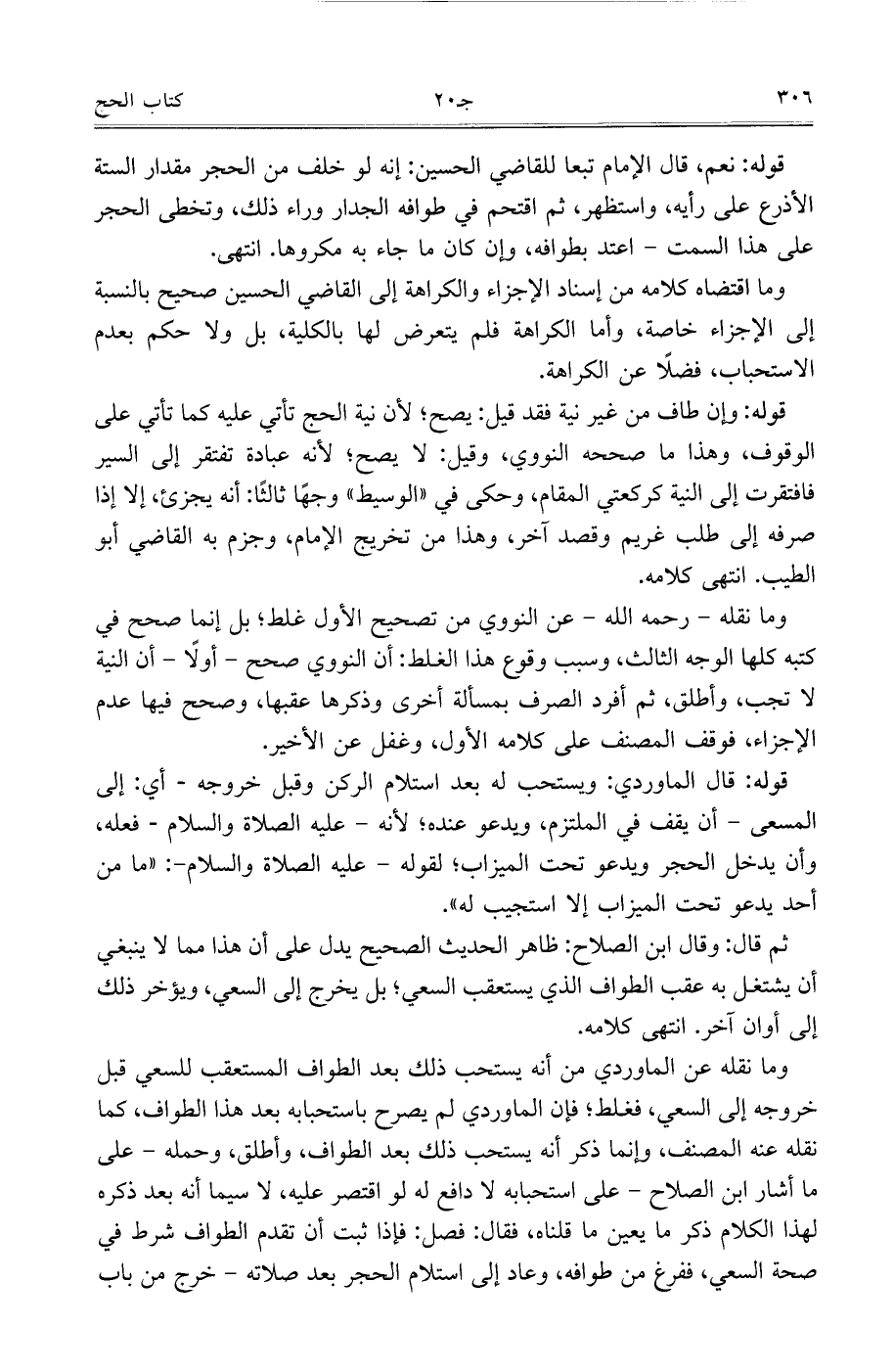 ثم قال: وقال ابن الصلاح: ظاهر الحديث الصحيح يدل على أن هذا مما لا ينبغي أن يشتغل به عقب الطواف الذي يستعقب السعي، بل يخرج إلى السعي، ويؤخر ذلك إلى أوان آخر. انتهى كلامه.