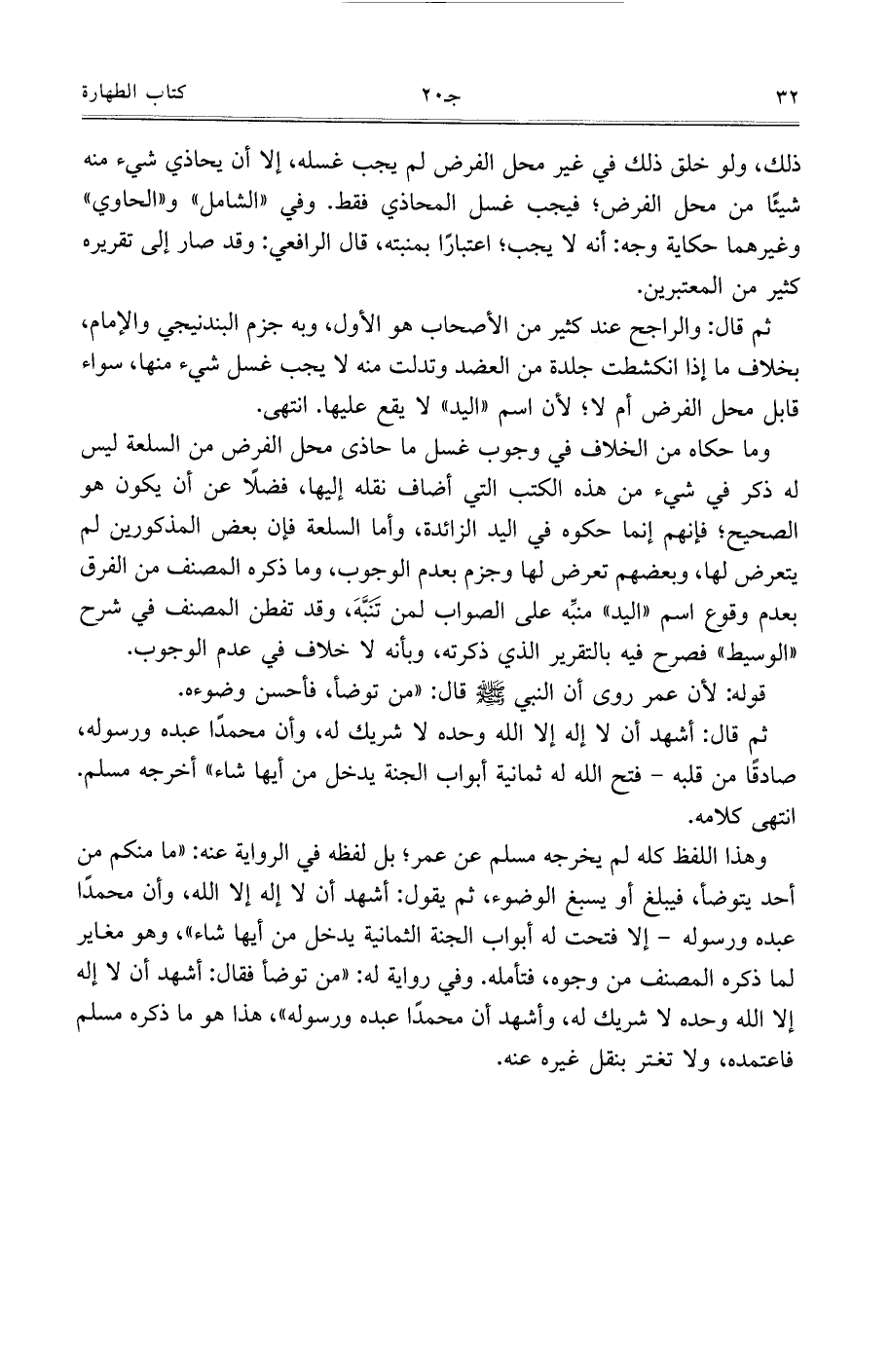 وما حكاه من الخلاف في وجوب غسل ما حاذى محل الفرض من السلعة ليس له ذكر في شيء من هذه الكتب التي أضاف نقله إليها، فضلًا عن أن يكون هو الصحيح، فإنهم إنما حكموه في اليد الزائدة، وأما السلعة فإن بعض المذكورين لم يتعرض لها، وبعضهم تعرض لها وجزم بعدم الوجوب، وما ذكره المصنف من الفرق بعدم وقوع اسم ((اليد)) منبه على الصواب لمن تنبه، وقد تفطن المصنف في شرح ((الوسيط)) فصرح فيه بالتقرير الذي ذكرته، وبأنه لا خلاف في عدم الوجوب.