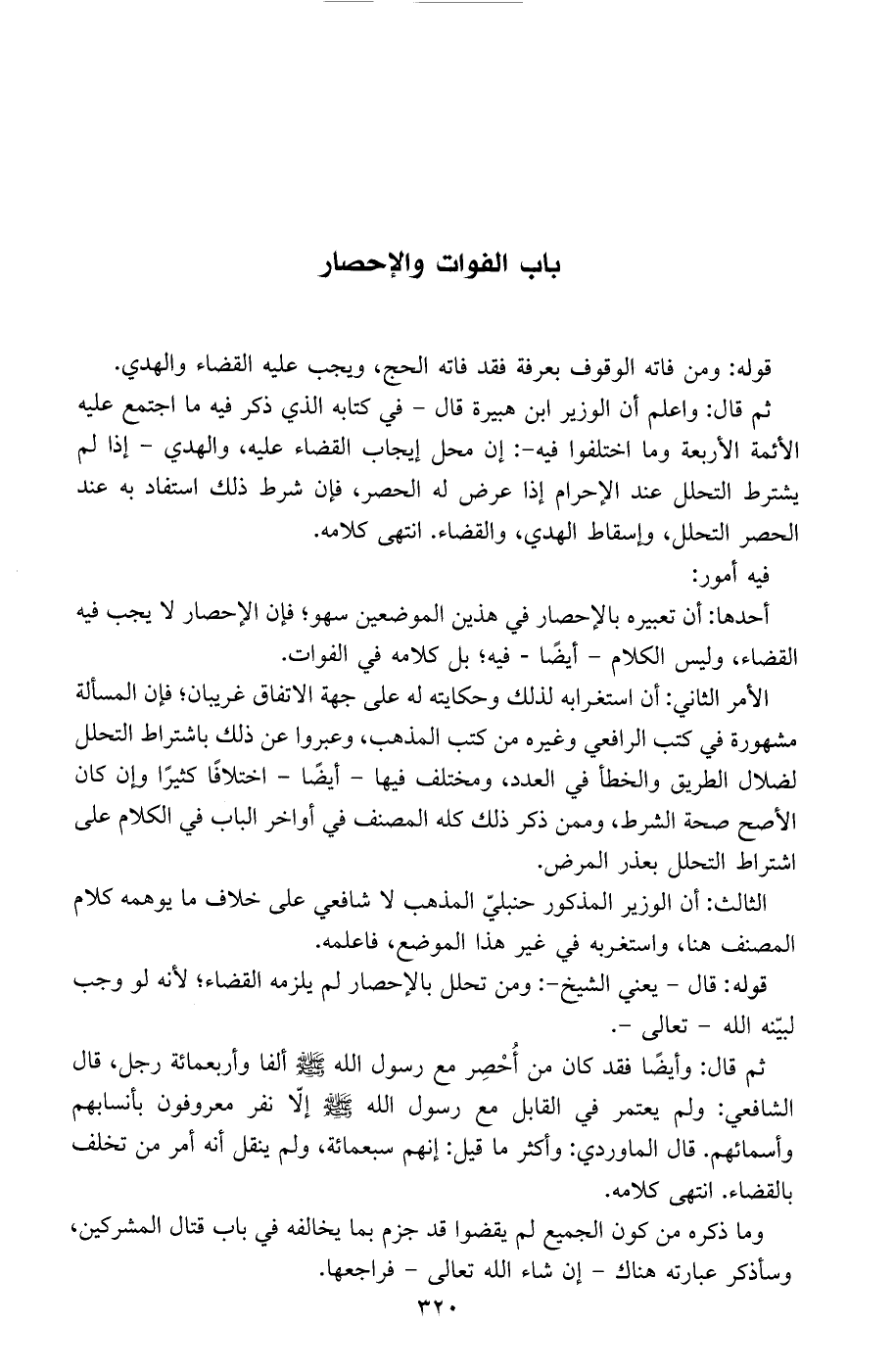 ثم قال: واعلم أن الوزير ابن هبيرة قال- في كتابه الذي ذكر فيه ما اجتمع عليه الأئمة الأربعة وما اختلفوا فيه-: إن محل إيجاب القضاء عليه، والهدي- إذا لم يشترط التحلل عند الإحرام إذا عرض له الحصر، فإن شرط ذلك استفاد به عند الحصر التحلل، وإسقاط الهدي، والقضاء. انتهى كلامه.