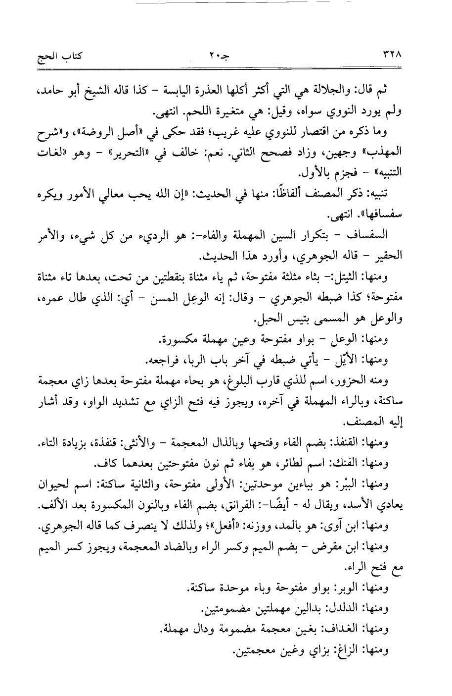 تنبيه: ذكر المصنف ألفاظًا: منها في الحديث: ((إن الله يحب معالي الأمور ويكره سفسافها)). انتهى.
