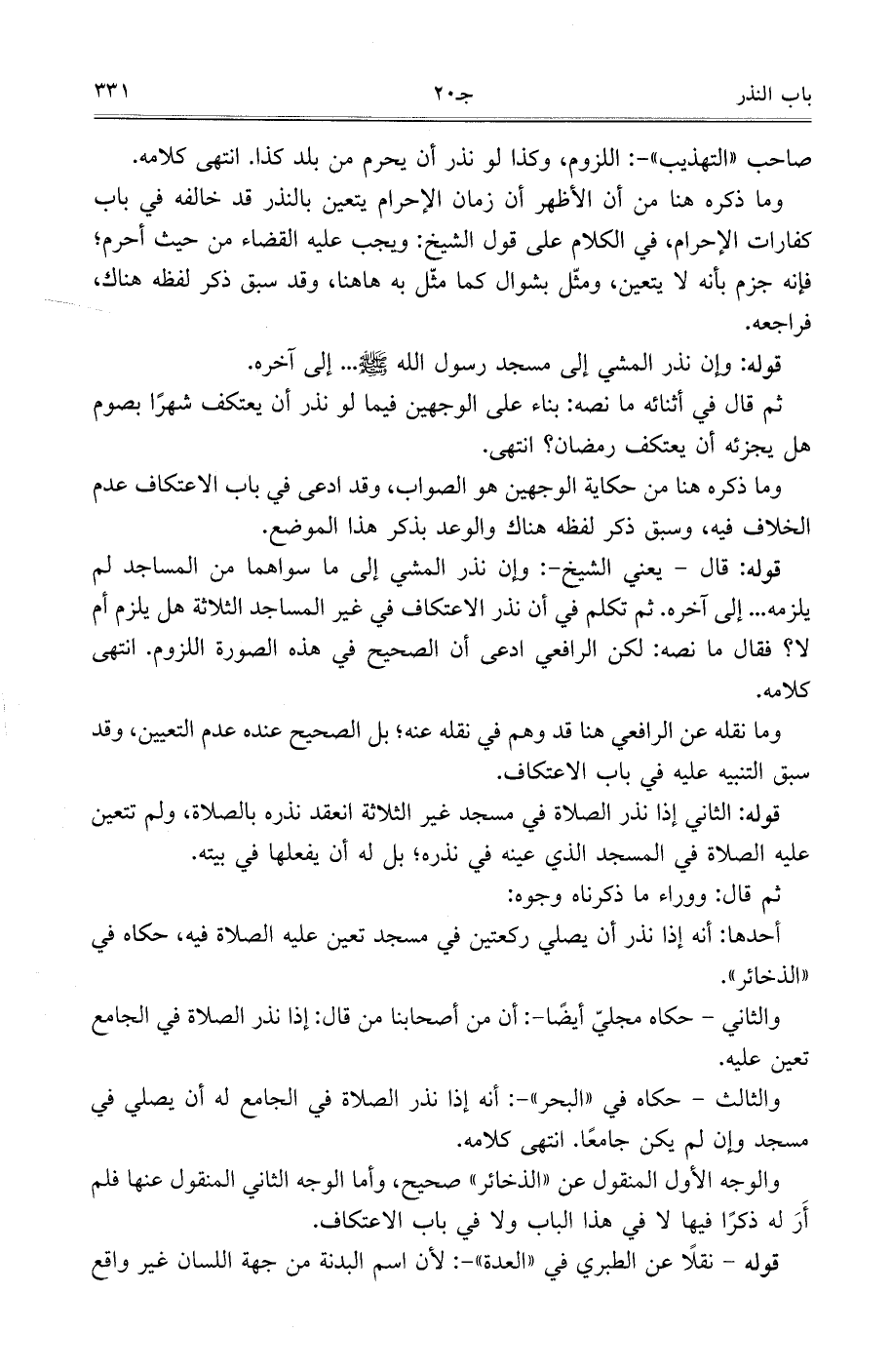 والوجه الأول المنقول عن ((الذخائر)) صحيح، وأما الوجه الثاني المنقول عنها فلم أر له ذكرًا فيها لا في هذا الباب ولا في باب الاعتكاف.