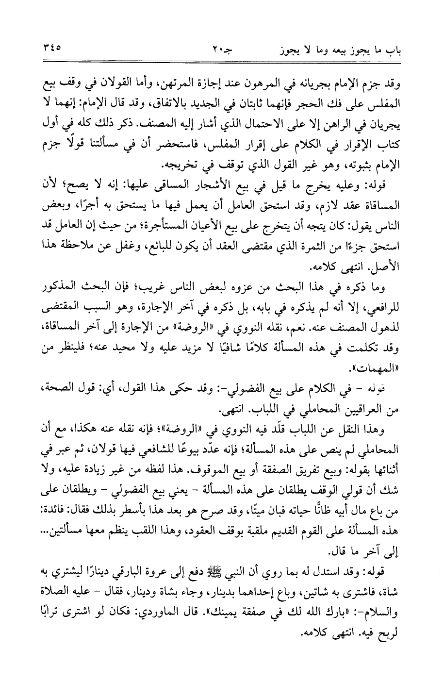 قوله: وقد استدل له بما روي أن النبي - صلى الله عليه وسلم - دفع إلى عروة البارقي دينارًا ليشتري به شاة، فاشترى به شاتين، وباع إحداهما بدينار، وجاء بشاة ودينار، فقال- عليه الصلاة والسلام-: ((بارك الله لك في صفقة يمينك)). قال الماوردي: فكان لو اشترى ترابًا لربح فيه. انتهى كلامه.