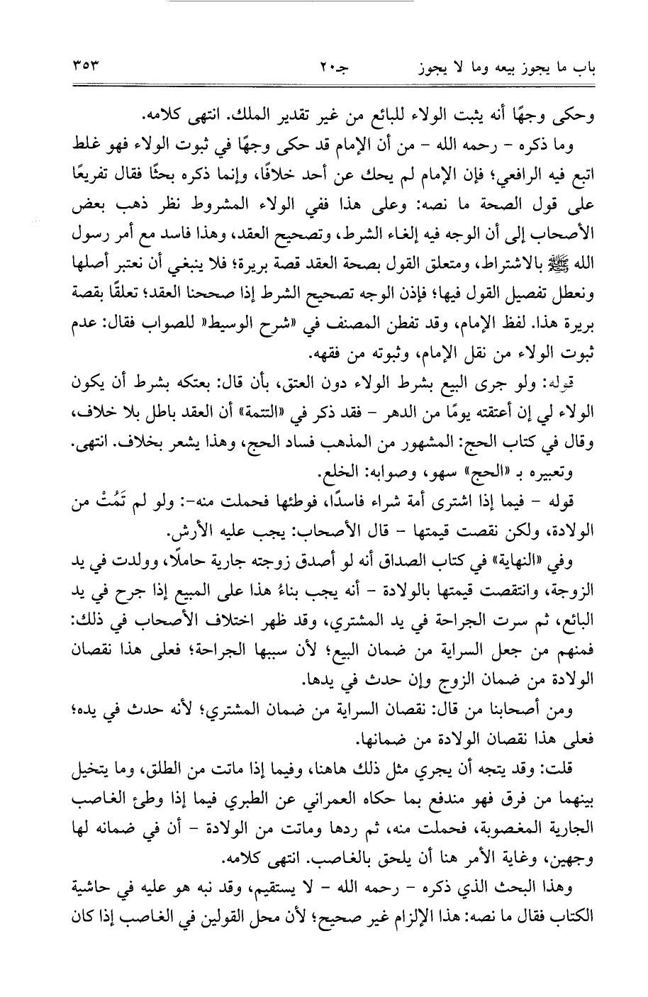 قوله: ولو جرى البيع بشرط الولاء دون العتق، بأن قال: بعتكه بشرط أن يكون الولاء لي إن أعتقه يومًا من الدهر- فقد ذكر في ((التتمة)) أن العقد باطل بلا خلاف، وقال في كتاب الحج: المشهور من المذهب فساد الحج، وهذا يشعر بخلاف. انتهى. وتعبيره بـ ((الحج)) سهو، وصوابه: الخلع.