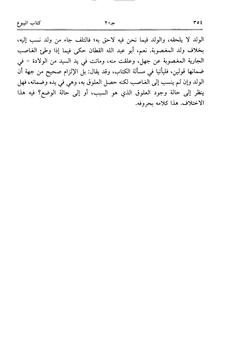 الولد لا يلحقه، والولد فيما نحن فيه لاحق به، فالتلف جاء من ولد نسب إليه، بخلاف ولد المغصوبة. نعم، أبو عبد الله القطان حكى فيما إذا وطئ الغاصب الجارية المغصوبة عن جهل، وعلقت منه، وماتت في يد السيد من الولادة- في ضمانها قولين، فليأتيا في مسألة الكتاب، وقد يقال: بل الإلزام صحيح من جهة أن الولد وإن لم ينسب إلى الغاصب لكنه حصل العلوق به، وهي في يده وضمانه، فهل ينظر إلى حالة وجود العلوق الذي هو السبب، أو إلى حالة الوضع؟ فيه هذا الاختلاف. هذا كلامه بحروفه.
