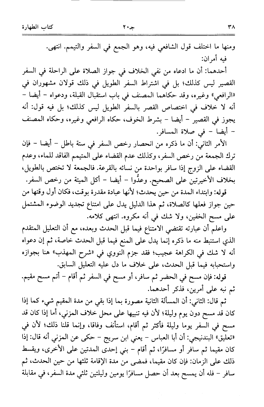 قوله: فإن مسح في الحضر ثم سافر، أو مسح في السفر ثم أقام- أتم مسح مقيم. ثم نبه على أمرين، فذكر أحدهما.